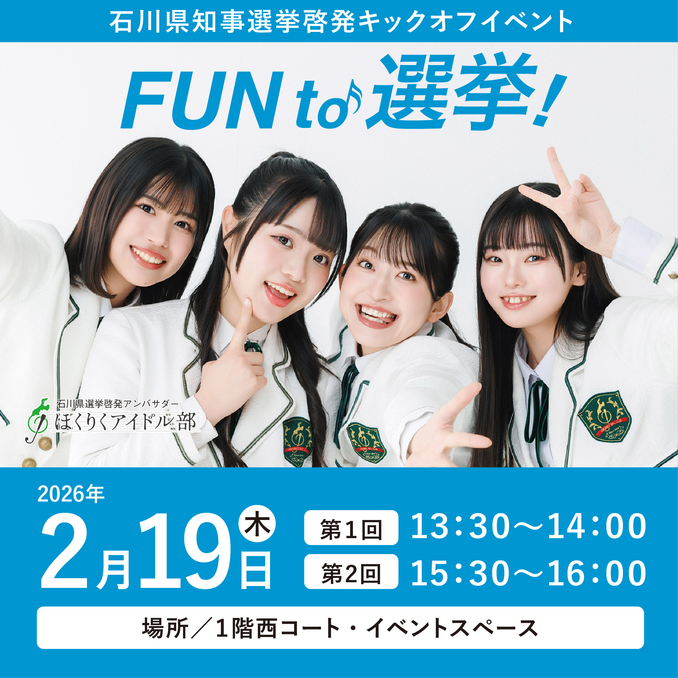 「ほくりくアイドル部」の新曲披露やトークなど。楽しみながら、選挙について考えてみませんか。