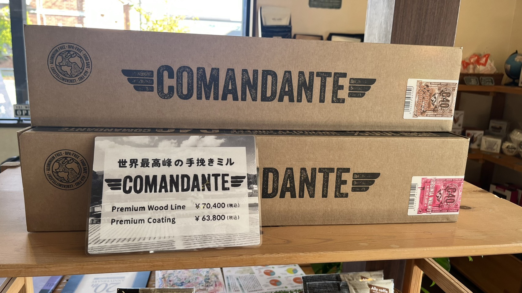 よくよく見てみると、手挽きミルでなんと約6、7万円もするとのこと。聞くと「COMANDANTE」と呼ばれる世界最高峰の手挽きミルの日本でも数少ない正規販売店であると知ってびっくりしました。