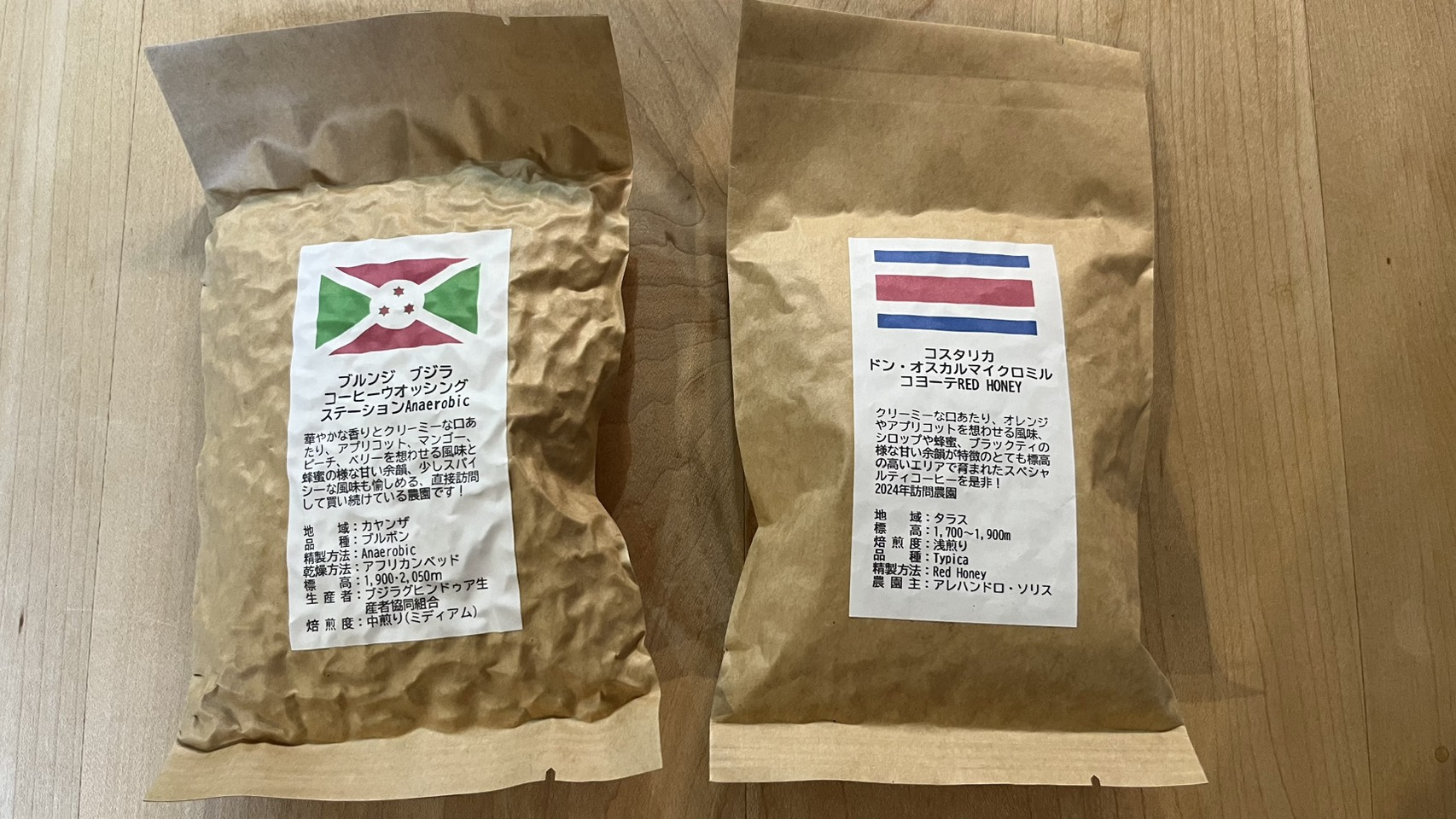 以前別のお店で飲んでみて好みだった味わいのブルンジ(アプリコット、マンゴー、ピーチ、ベリー)とコスタリカ レッドハニー精製(オレンジ、アプリコット、シロップ、はちみつ、ブラックティー)とコスタリカ ナチュラル精製(ワイン、ピーチ、イチジク、黒糖)で悩み、コスタリカ ナチュラル精製を選択。