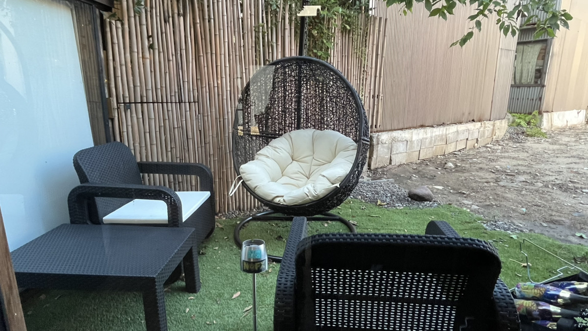 蝶が優雅に羽を休めるかのような、特別な安らぎを体感できます。ゆりかごに揺られながら風を感じていると、日頃の疲れが癒やされていくのを感じました。