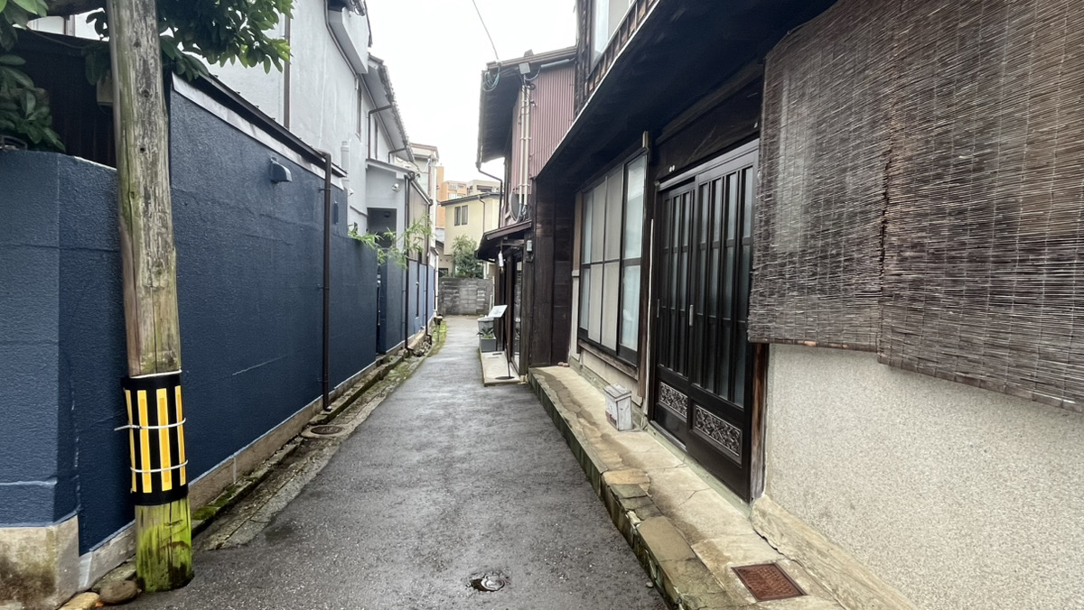 ひがし茶屋街の住宅がたくさん並んでいるところを歩いていると、こんな看板が!