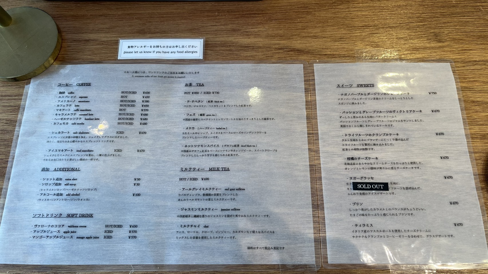 豊富なメニュー表を前に、お茶の種類が多く迷ってしまいました。今回は紅茶を選びましたが、デザートは迷わず大好きなプリンに決定しました。