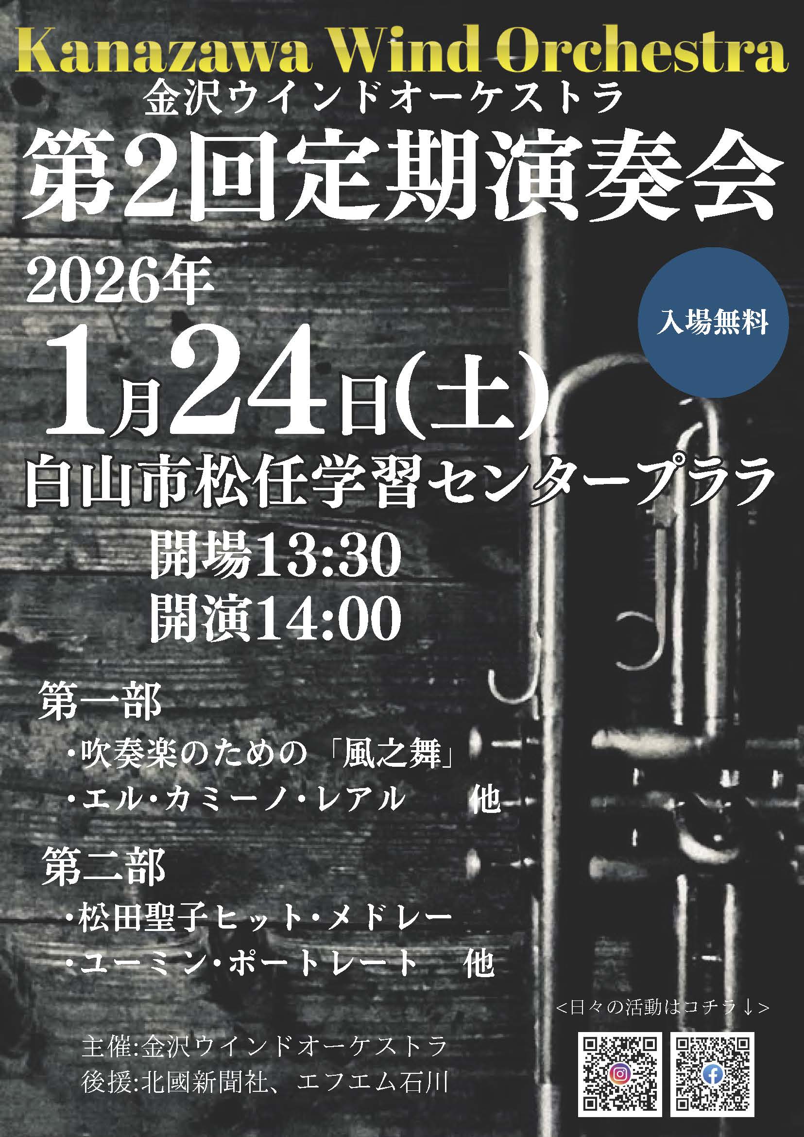- 1/24(土)|金沢ウインドオーケストラ 第2回定期演奏会|白山市