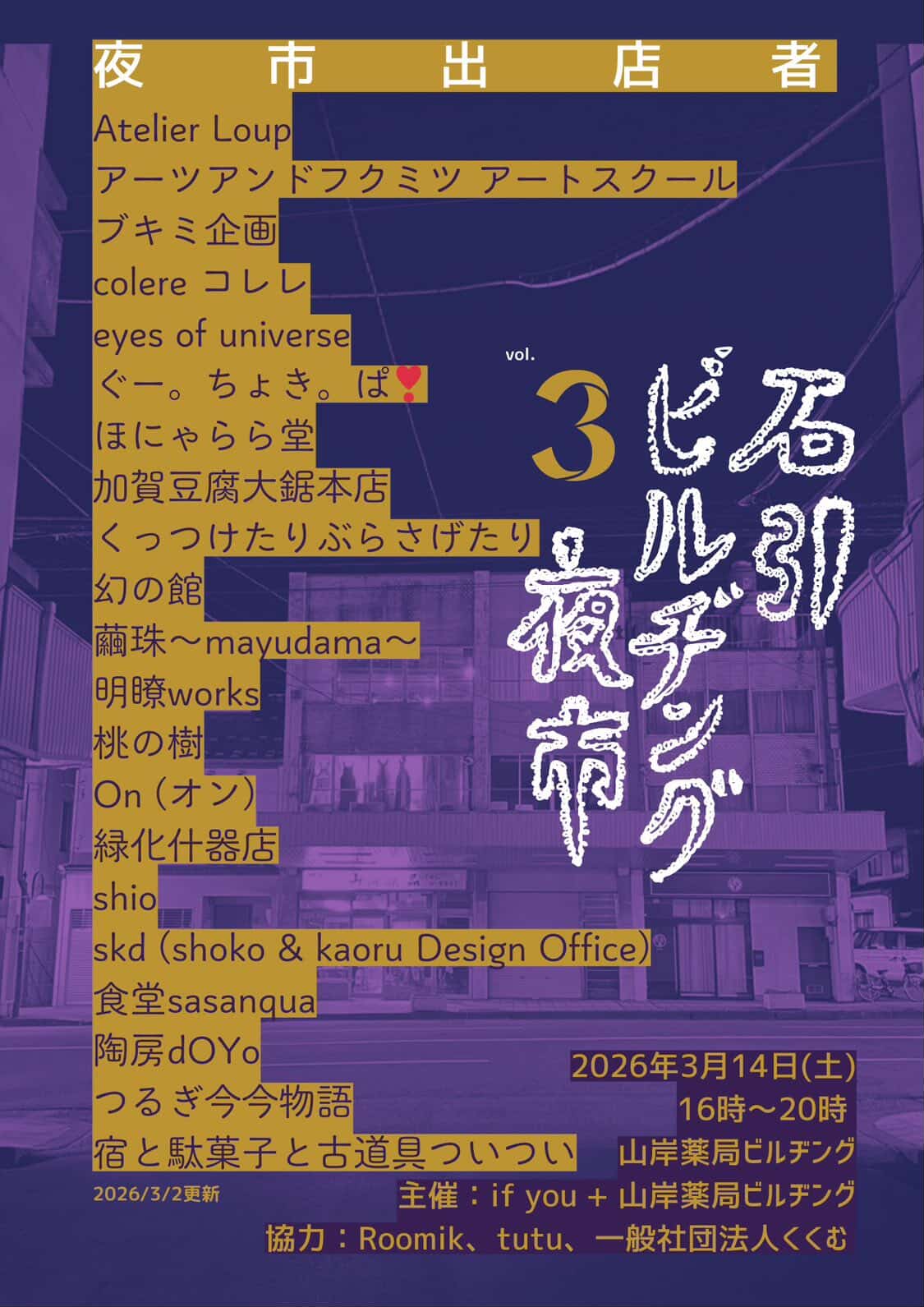 3/14(土)|石引ビルヂング夜市 vol.3|金沢市(※終了)