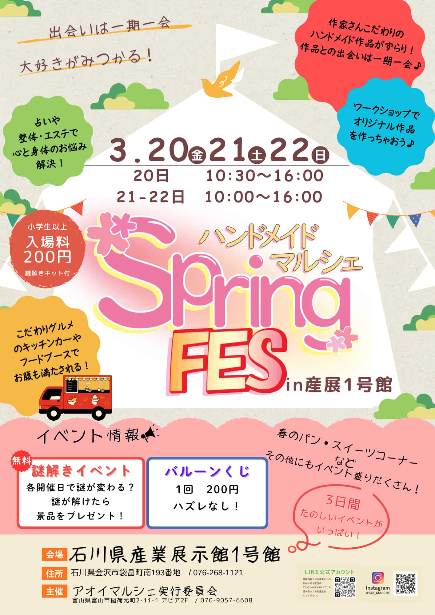 3/20(金・祝)・21(土)・22(日)|ハンドメイドマルシェSpringFES|金沢市