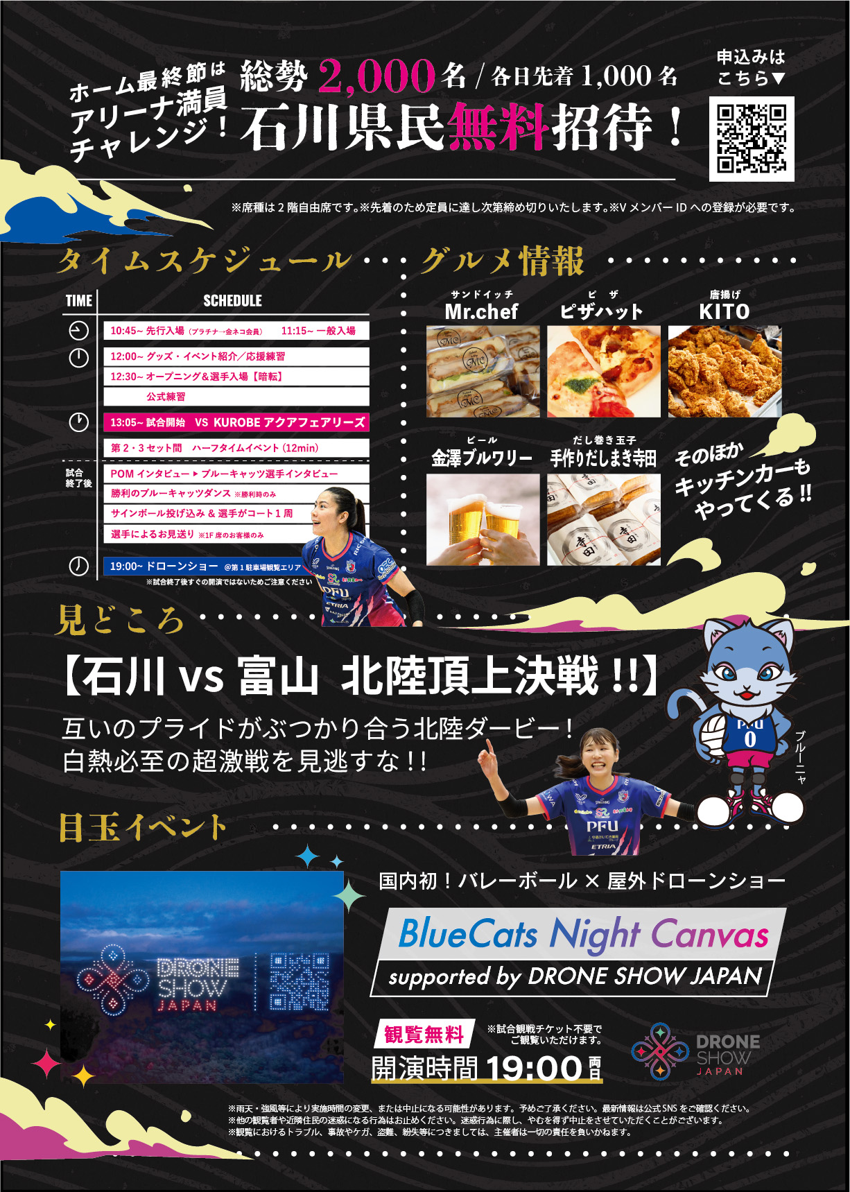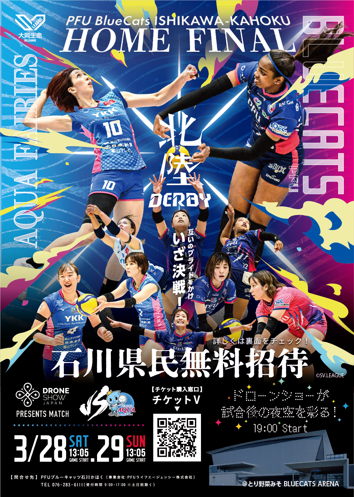3/28(土)・29(日)|【石川県民無料招待】PFUブルーキャッツ石川かほく ドローンショー・ジャパンPRESENTS MATCH|かほく市
