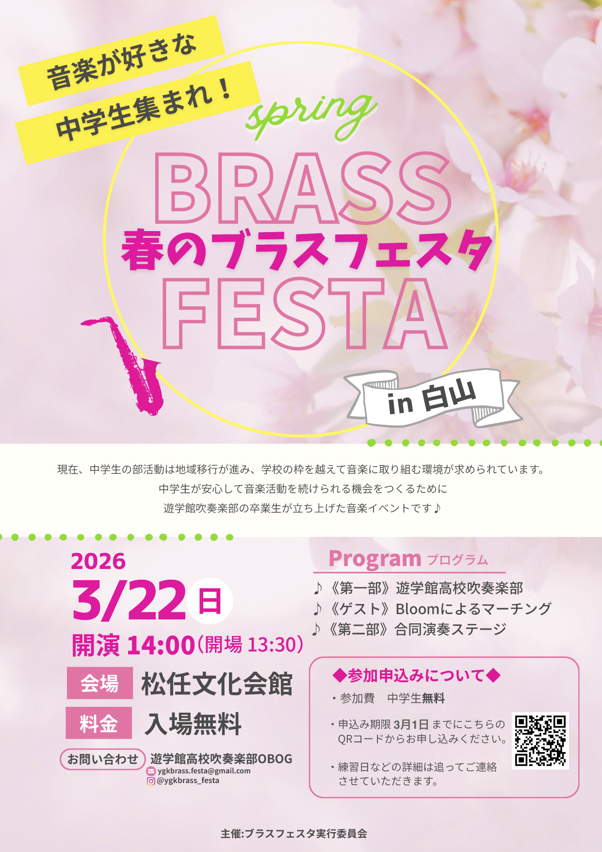 - 3/22(日)|春のブラスフェスタ in 白山|白山市