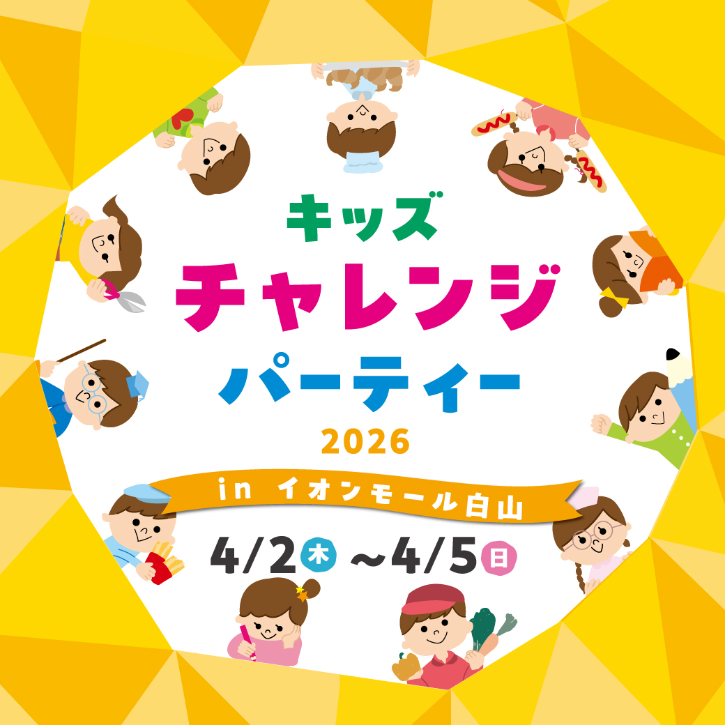 - 4/2(木)〜5(日)|キッズチャレンジパーティー2026 inイオンモール白山|白山市
