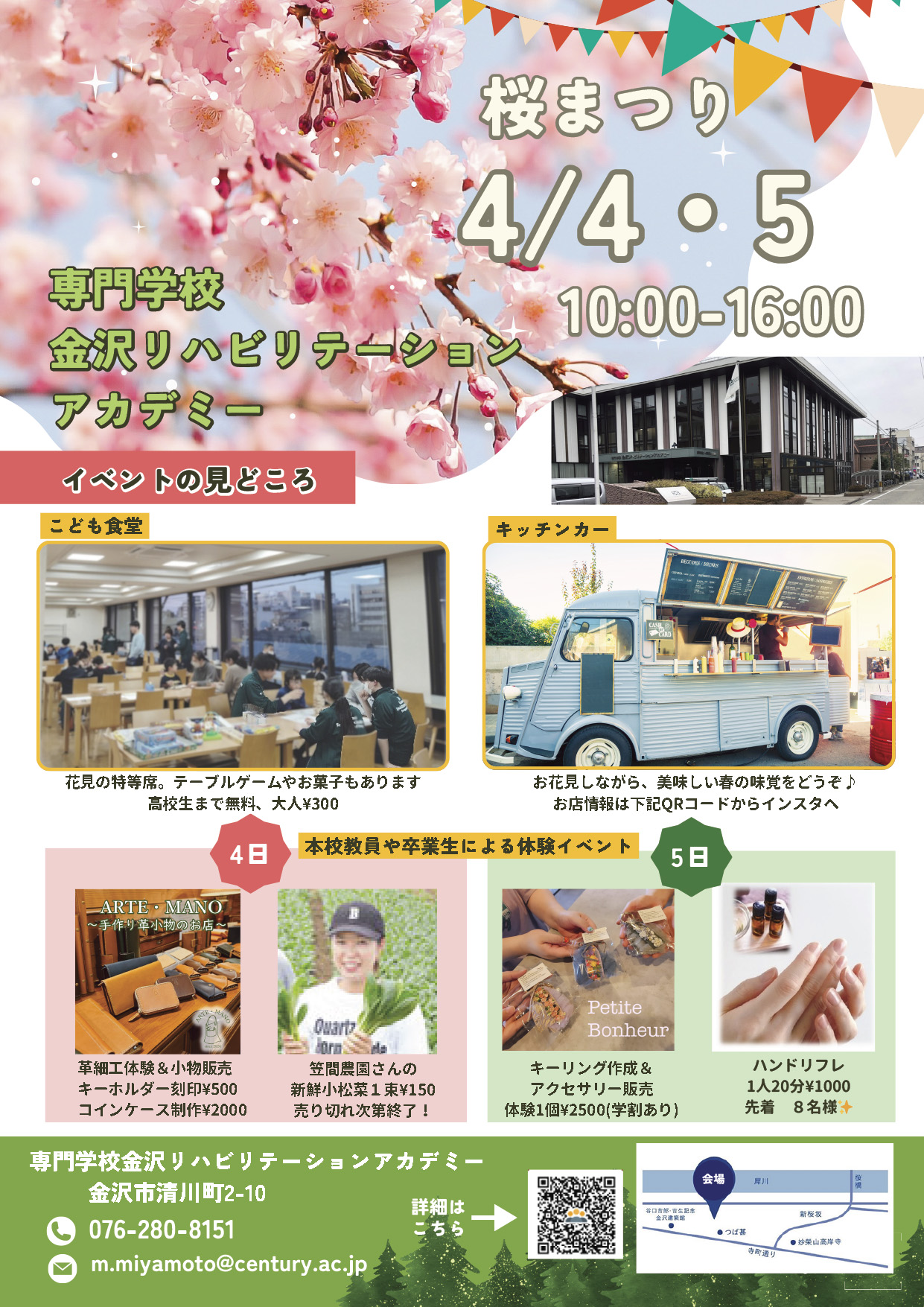4/4(土)・5(日)|専門学校 金沢リハビリテーションアカデミー 桜まつり|金沢市