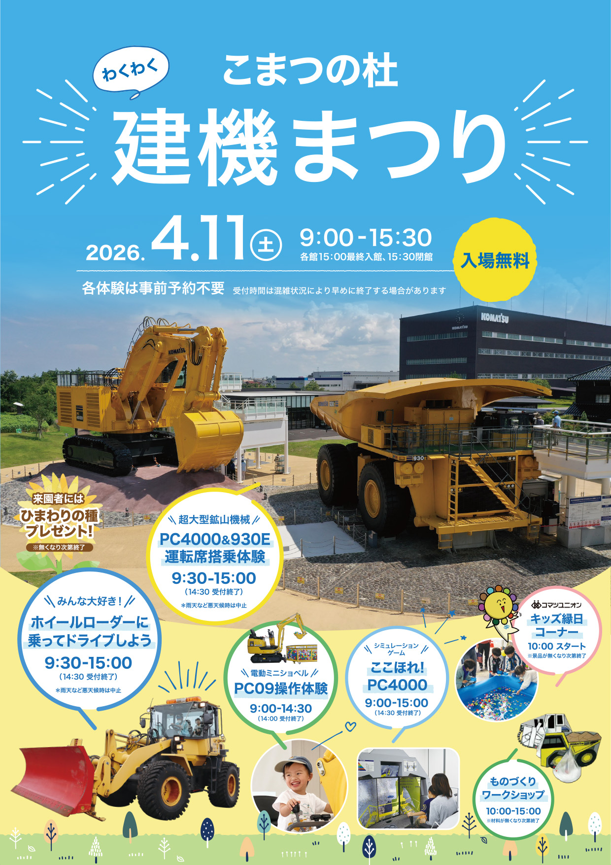 4/11(土)|こまつの杜 わくわく建機まつり|小松市