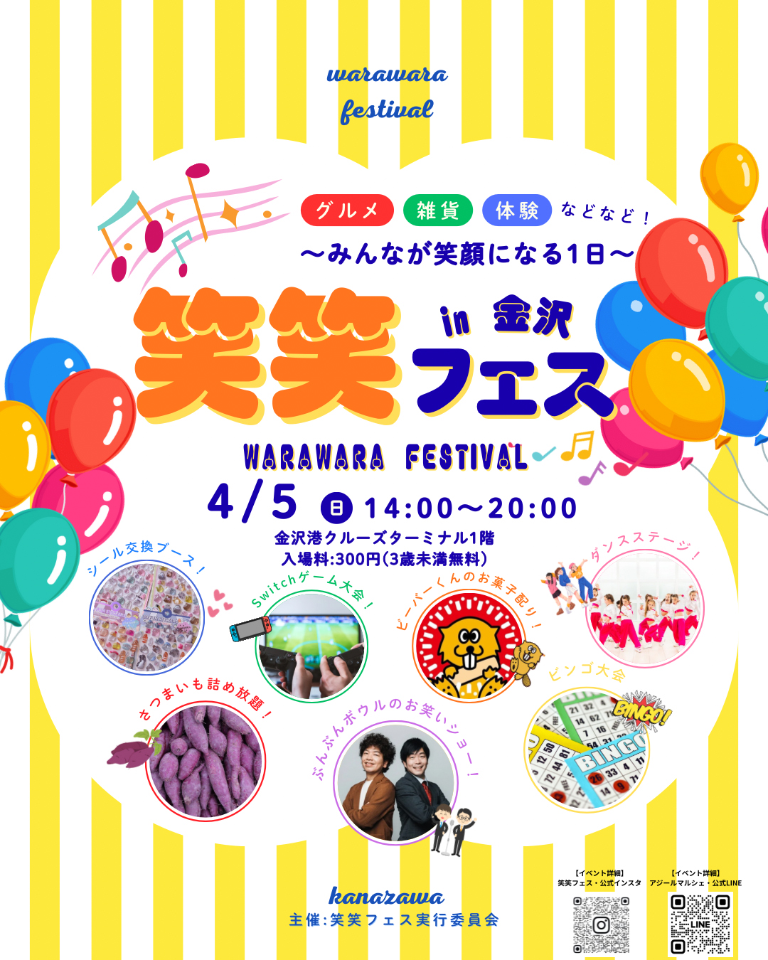 - 4/5(日)|笑笑フェス in 金沢|金沢市