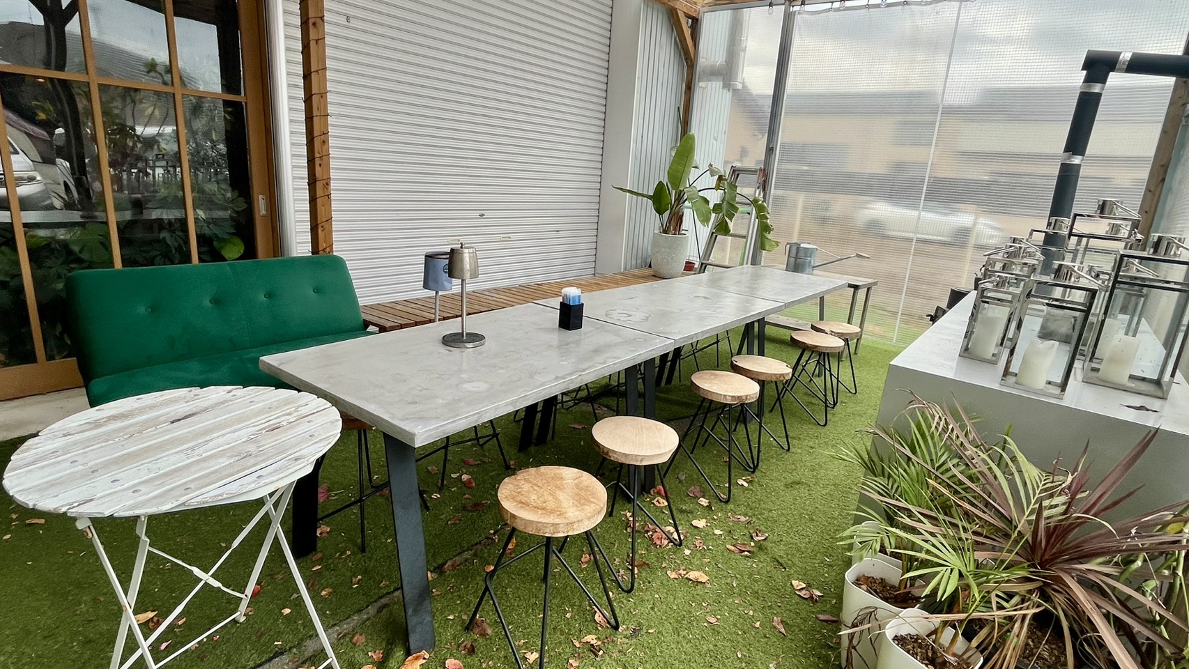 外観は倉庫のまま。でも扉を開ければ、インドネシア・タゲンゴ村とのつながり、倉庫を改装した個性的な空間、そして「ゆっくりしてほしい」という想いが詰まっています。