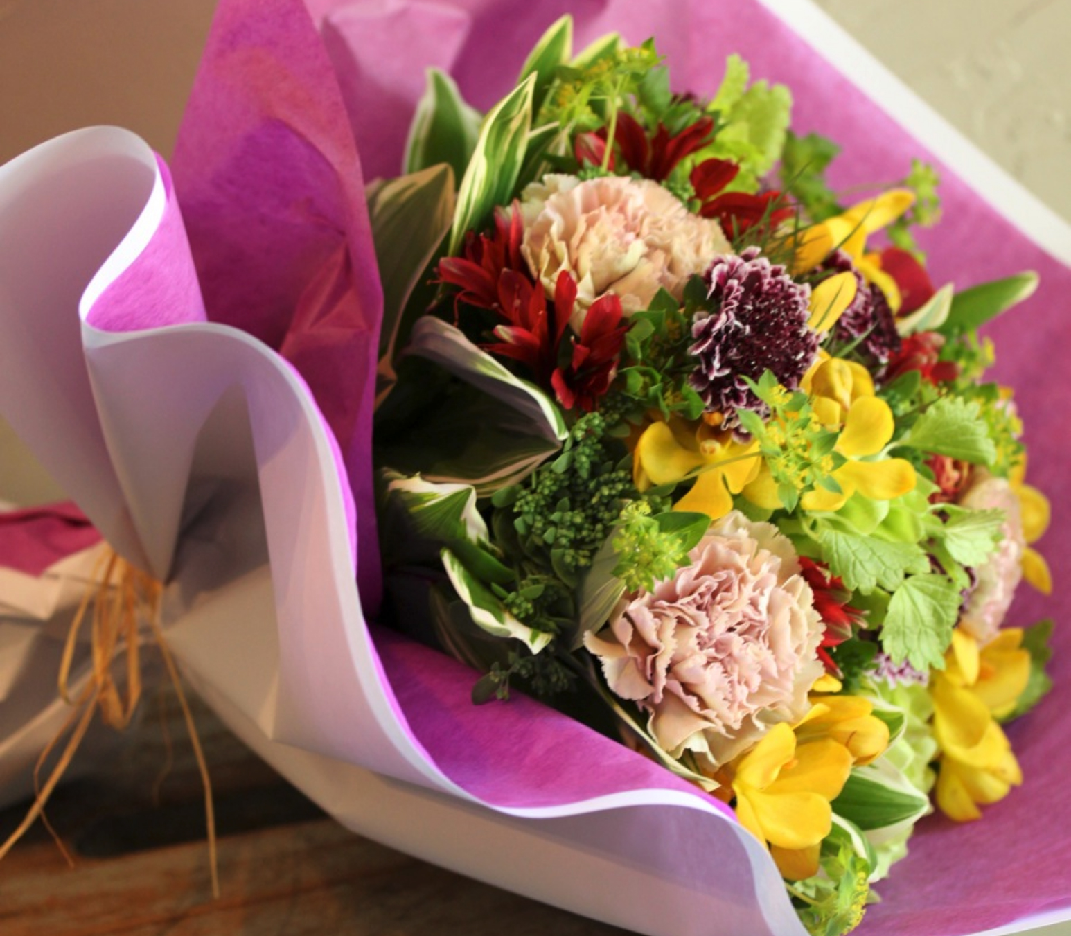 定番の花束は華やかで、感謝の気持ちを伝えるギフトとして最適。