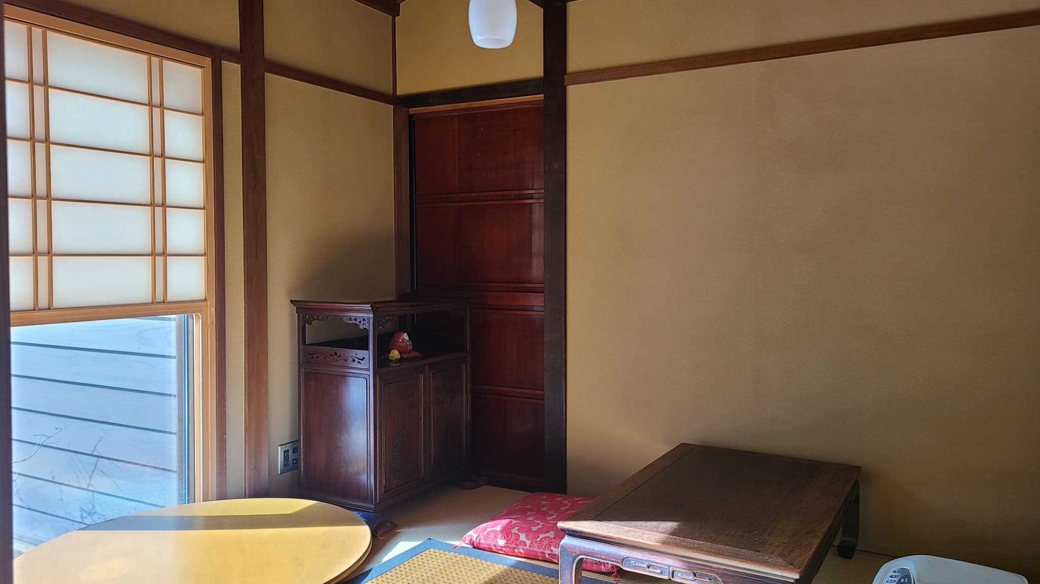 ひときわ目を惹く黒瓦の屋根に、2階に並ぶ美しい格子戸。この趣深い建物は、かつて街の健康を支えていた薬屋をリノベーションした本物の古民家です。