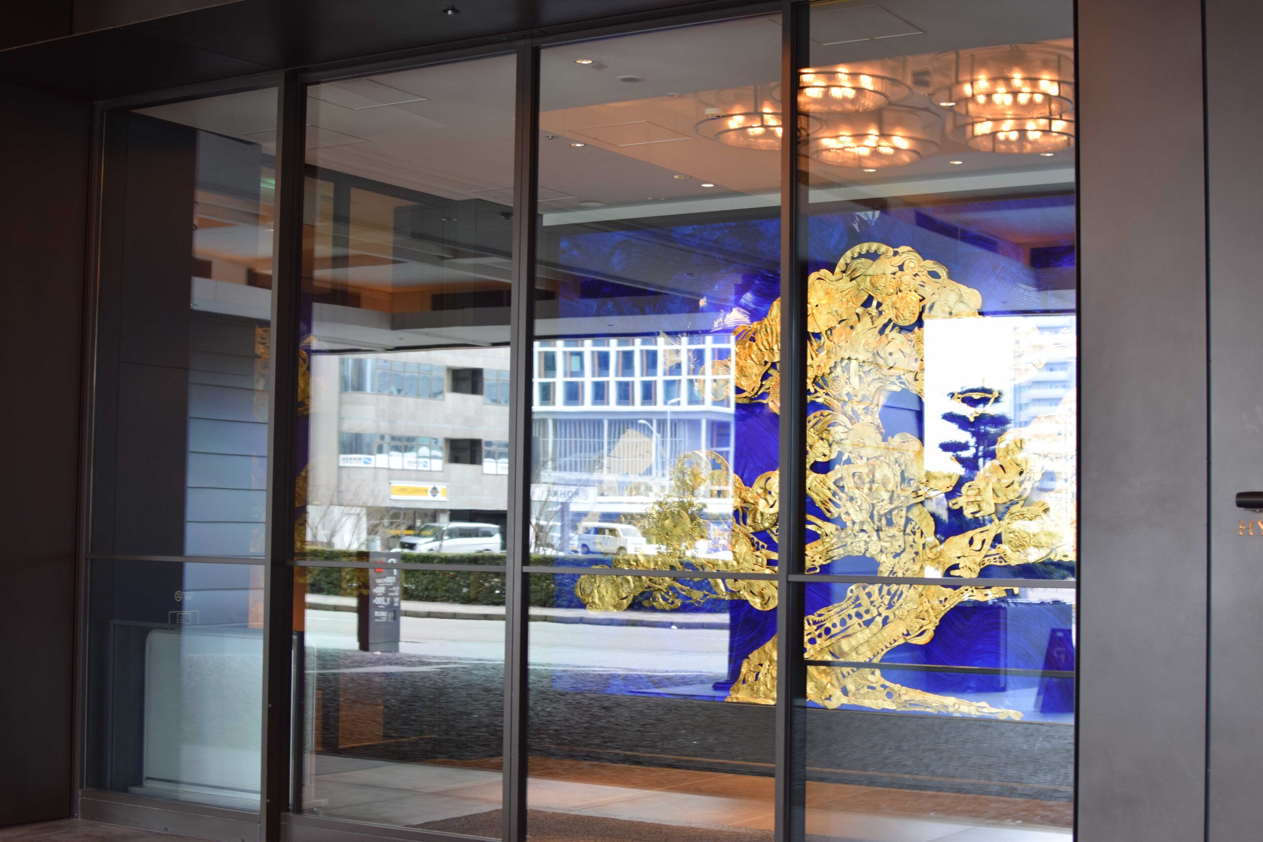 金の松があしらわれた印象的なエントランスを抜け、エレベーターでロビーフロアへ向かいます。
