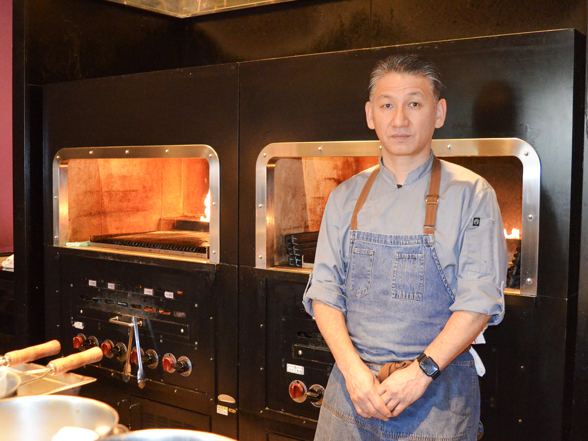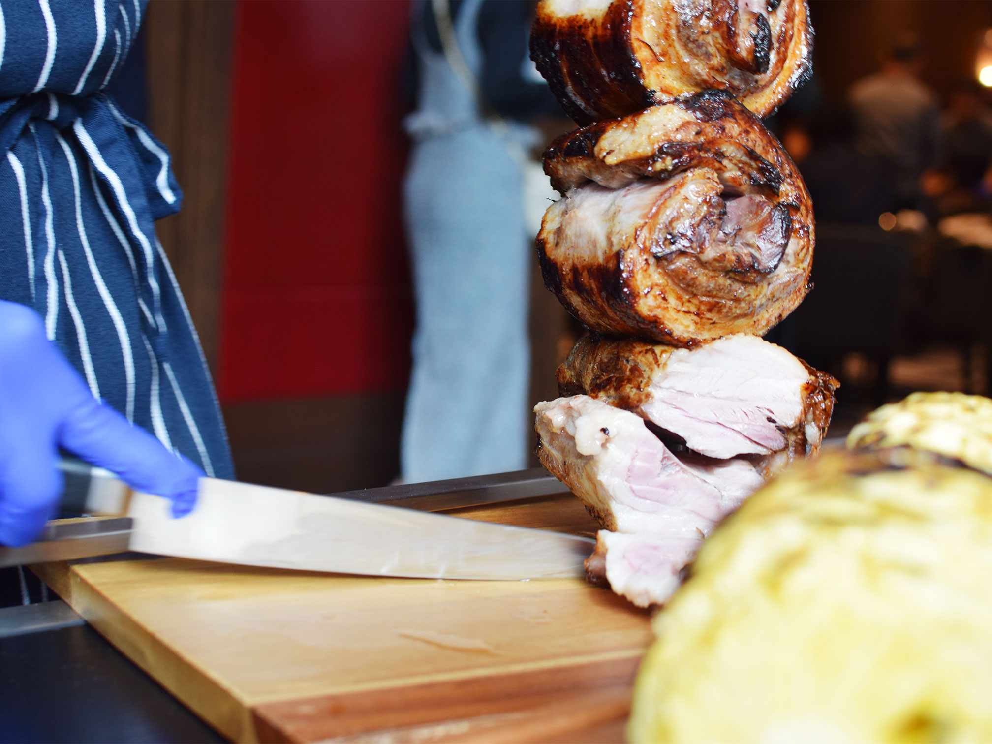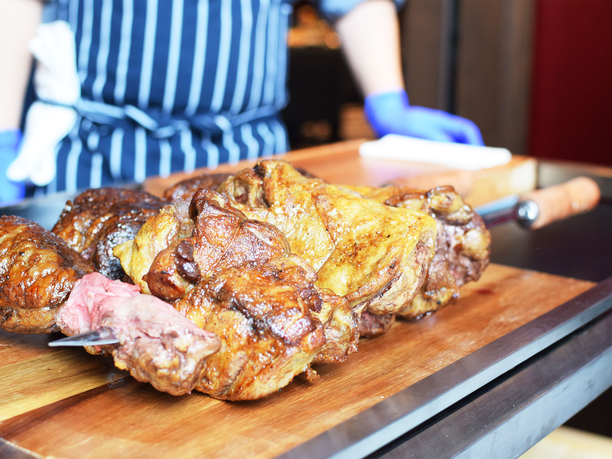 ダイナミックに串刺しされたお肉をグリルで焼き上げ、焼き立てを目の前でカットして提供してくれるスタイル。県内ではかなり珍しいのではないでしょうか。