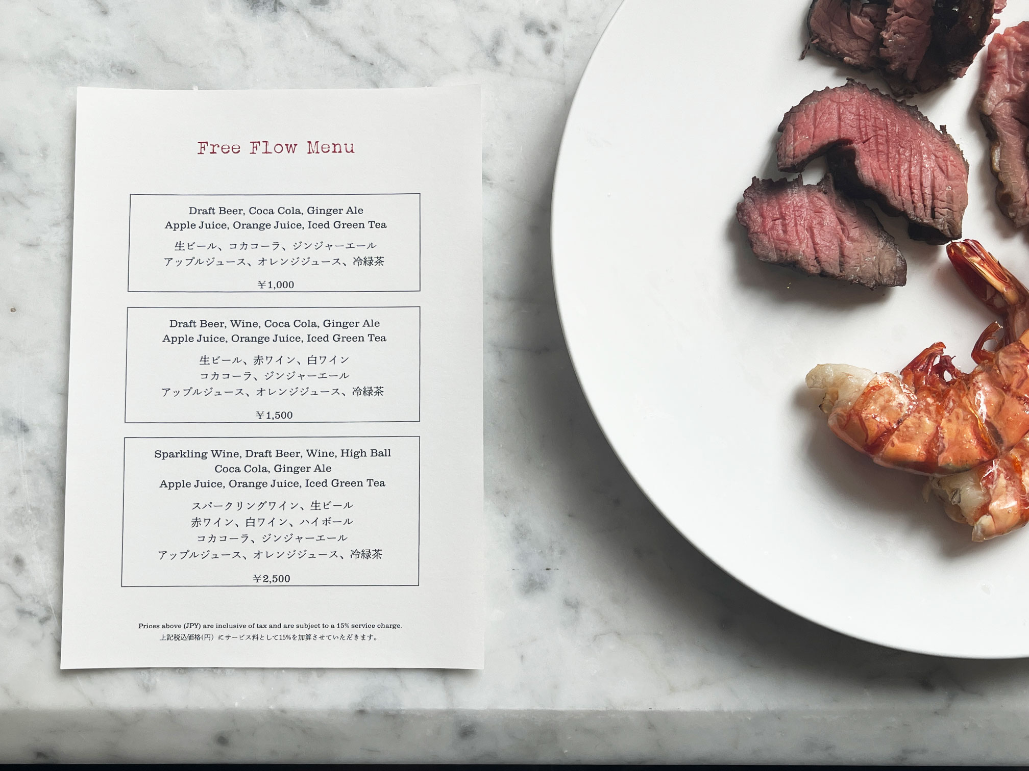 ちなみにドリンクは、追加料金でフリーフロー(飲み放題)プランも用意されています。