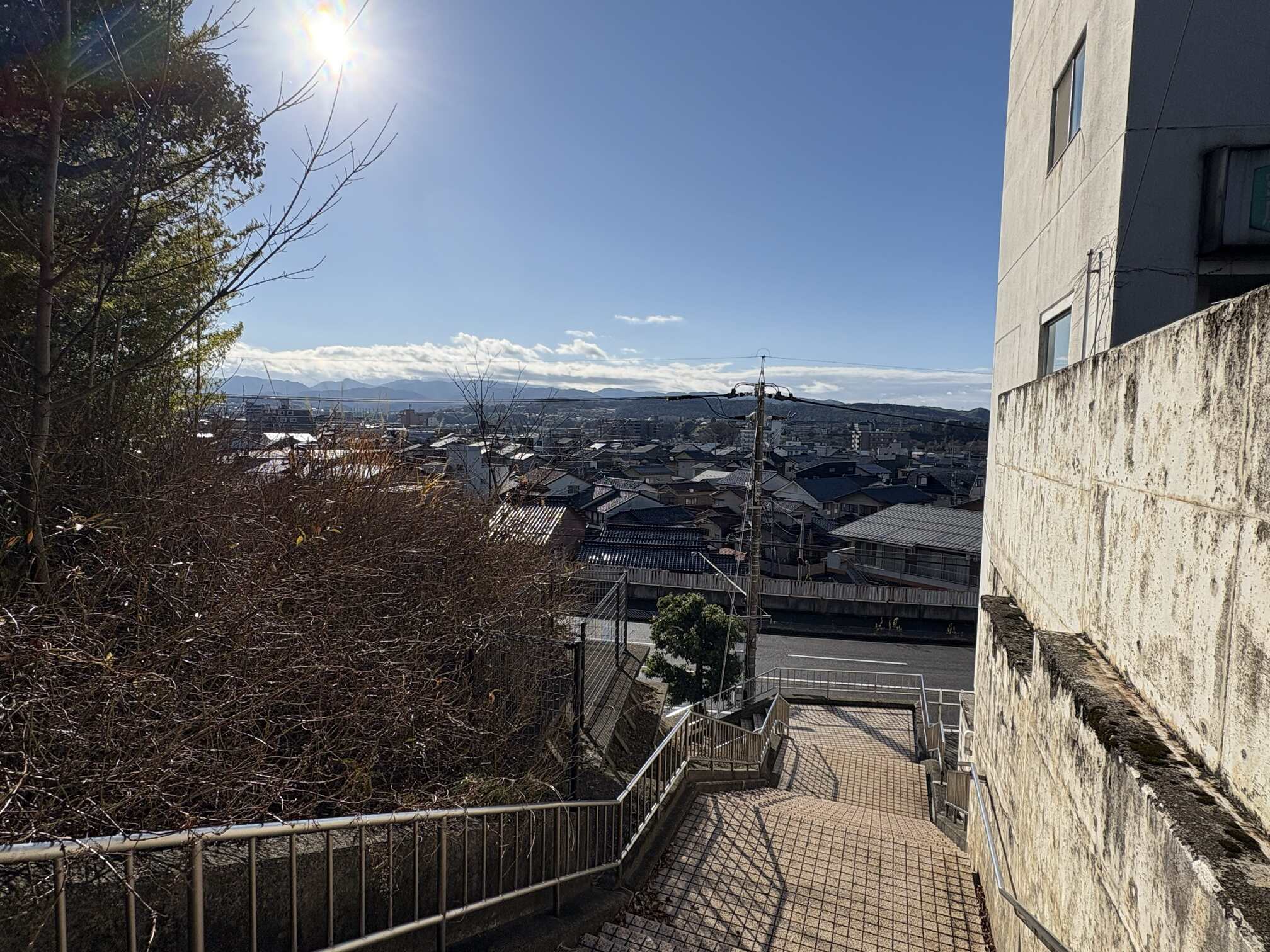 「向こう側の山の麓に見えているのが寺町あたり。景色がいいということが、ここの特徴ですね」と山田さんは微笑む。