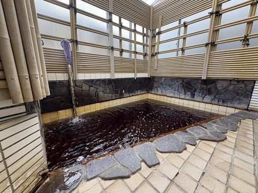 泉質は、透明度の高い濃い琥珀色のナトリウム-塩化物・炭酸水素塩泉で、ツルツル・トロトロの感覚。光の角度によってはアメジストのような色にも見える。