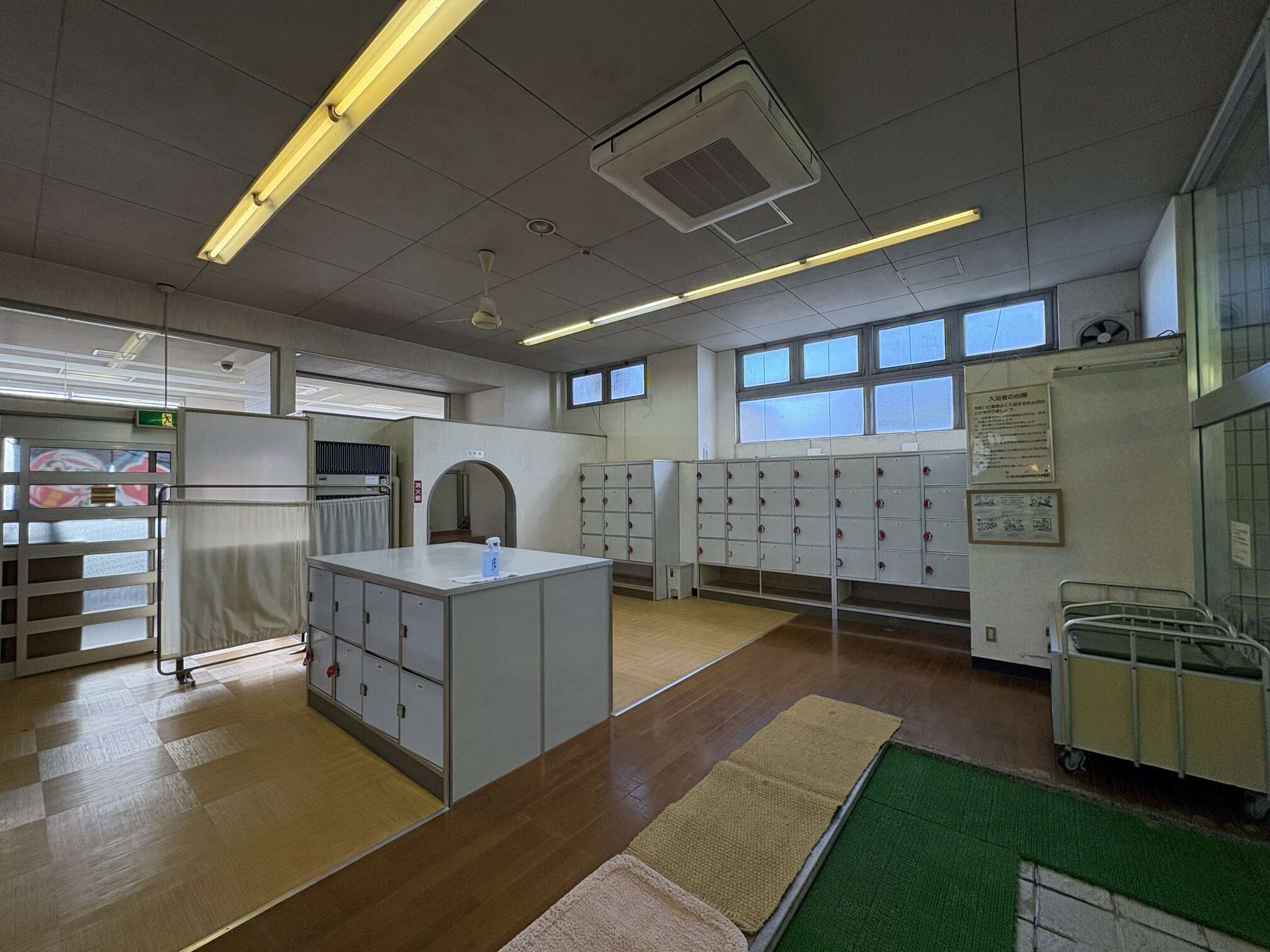 昔ながらの番台スタイルと天井が高く広々とした脱衣所