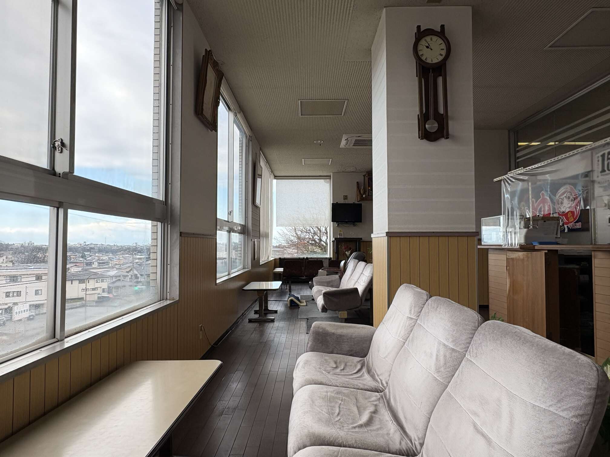 3階のロビーの窓からは、犀川流域の家並みや周辺の山々を一望できる。とても気持ちが良くついつい景色に見とれて長居してしまう。