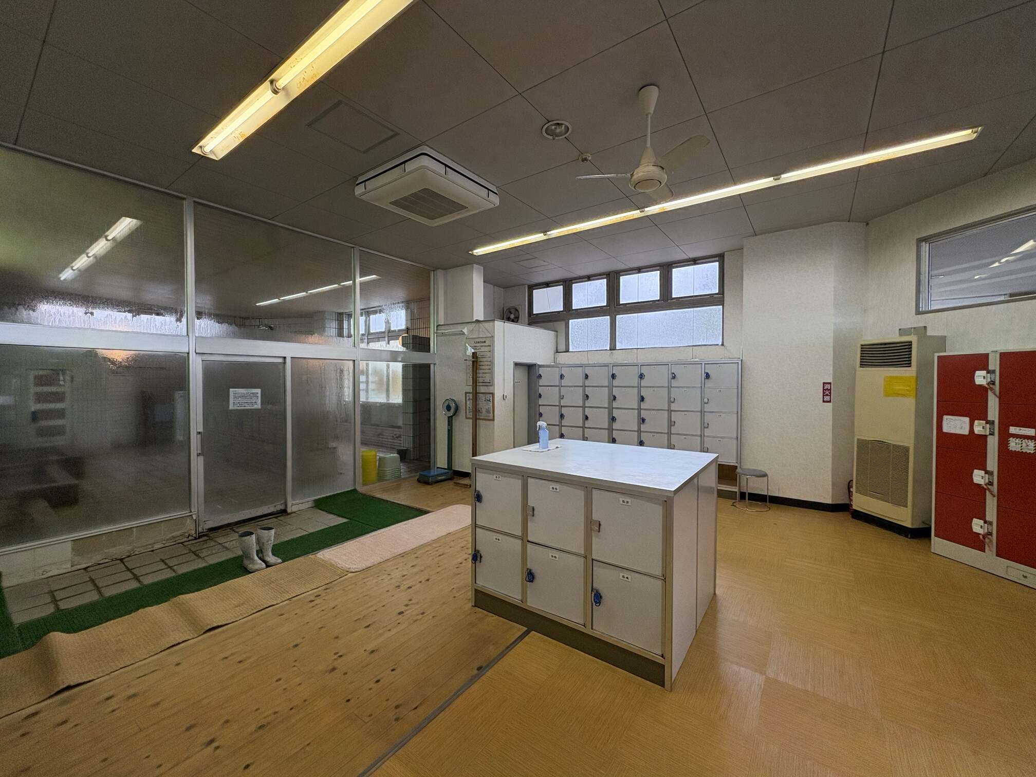 ロッカーは昔ながらの鍵付きスタイル。ロッカーの中に籠があるのも嬉しい。