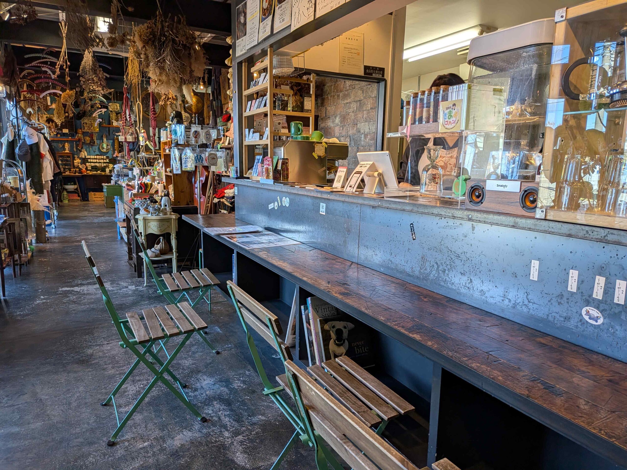 ガラス張りのドアを開け店内に入ると、左手に雑貨屋さん、右手にレコード屋さん、そして目の前に「Islet Canteen(アイレットキャンティーン)」さんのカウンターが広がっています。