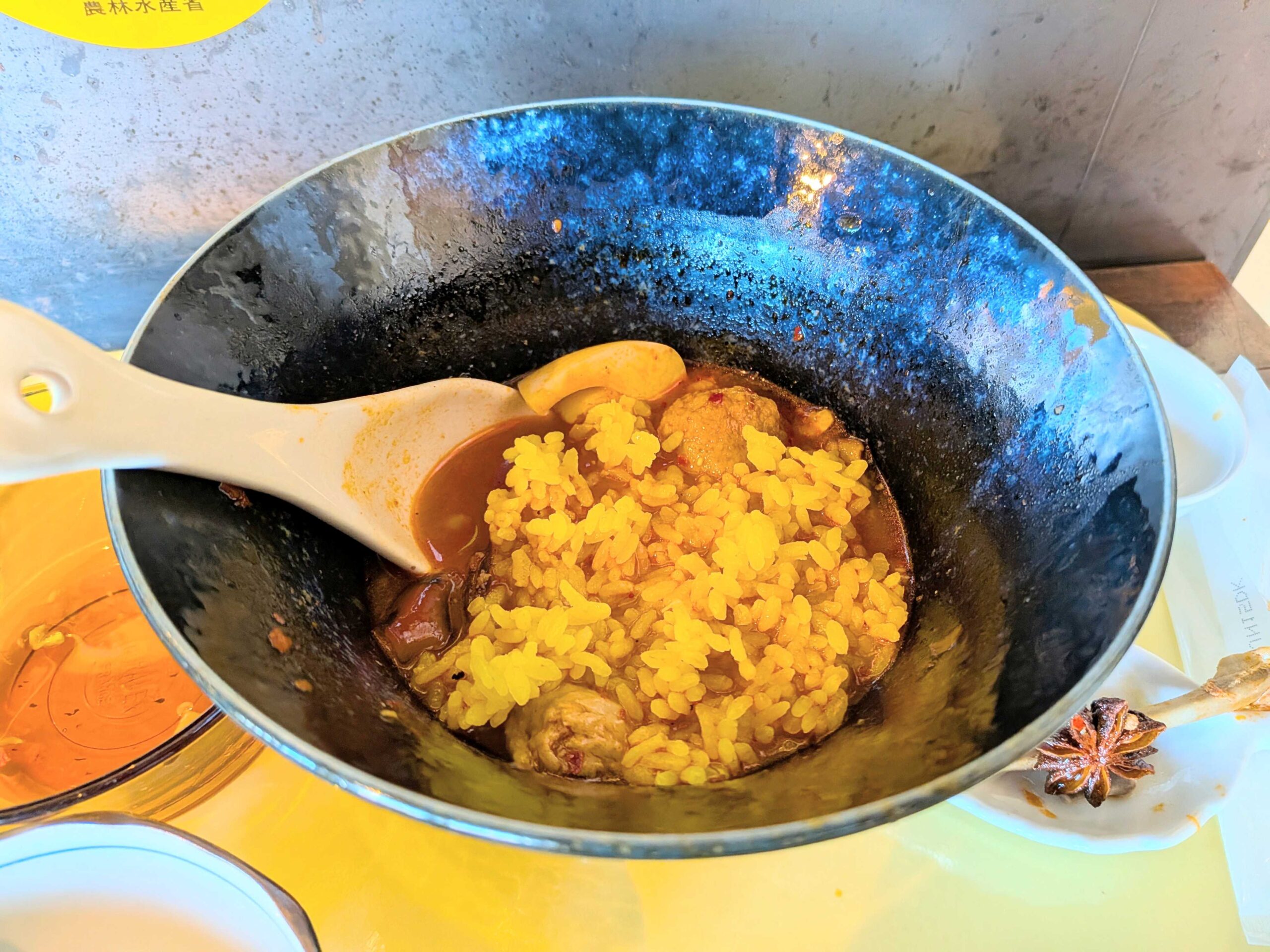 ダ―ラーピーを食べ終えたら、スープを楽しむためにターメリックライスを投入!