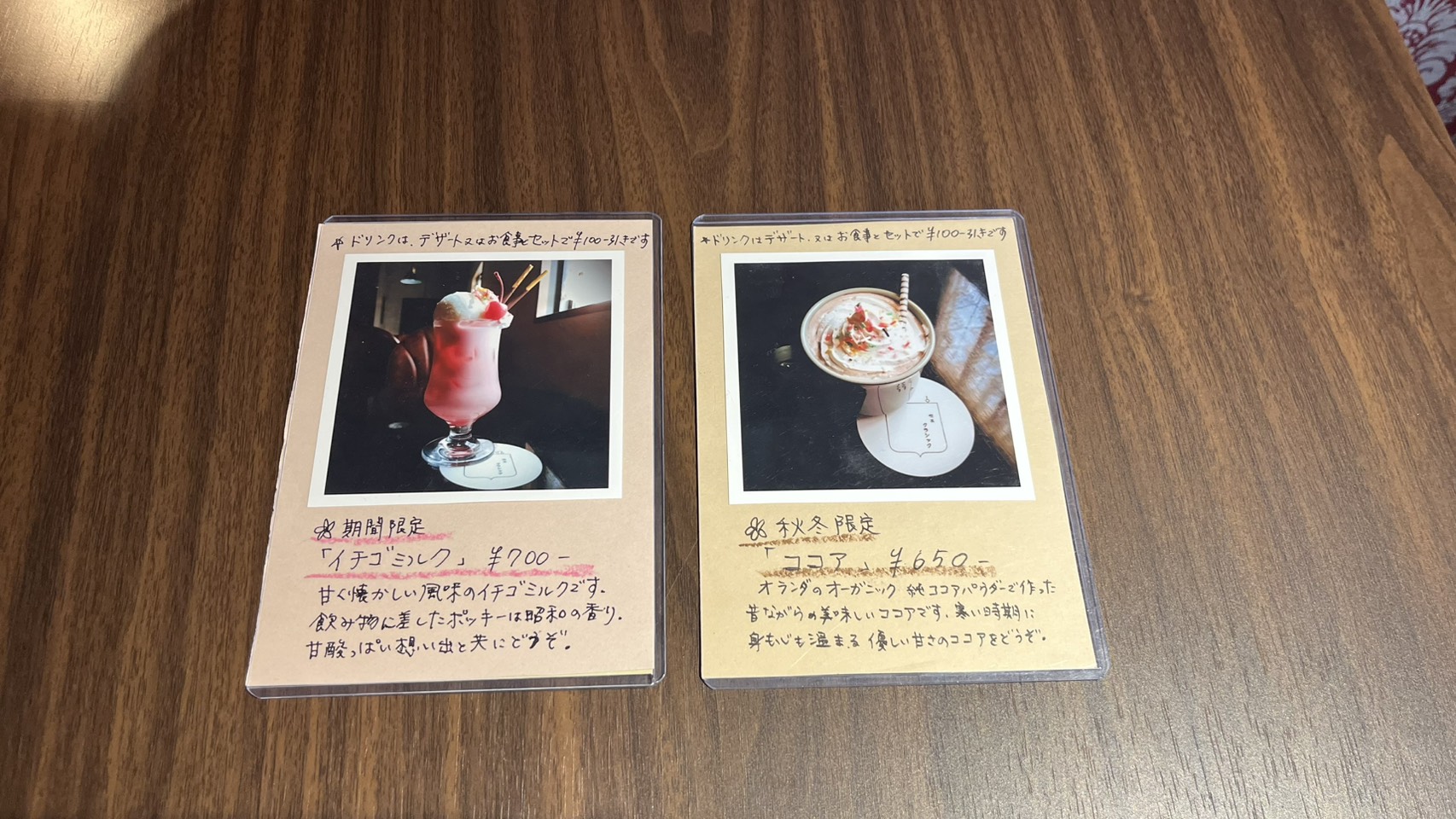 イチゴミルクにココア。ドリンクは見た目も可愛いですね。