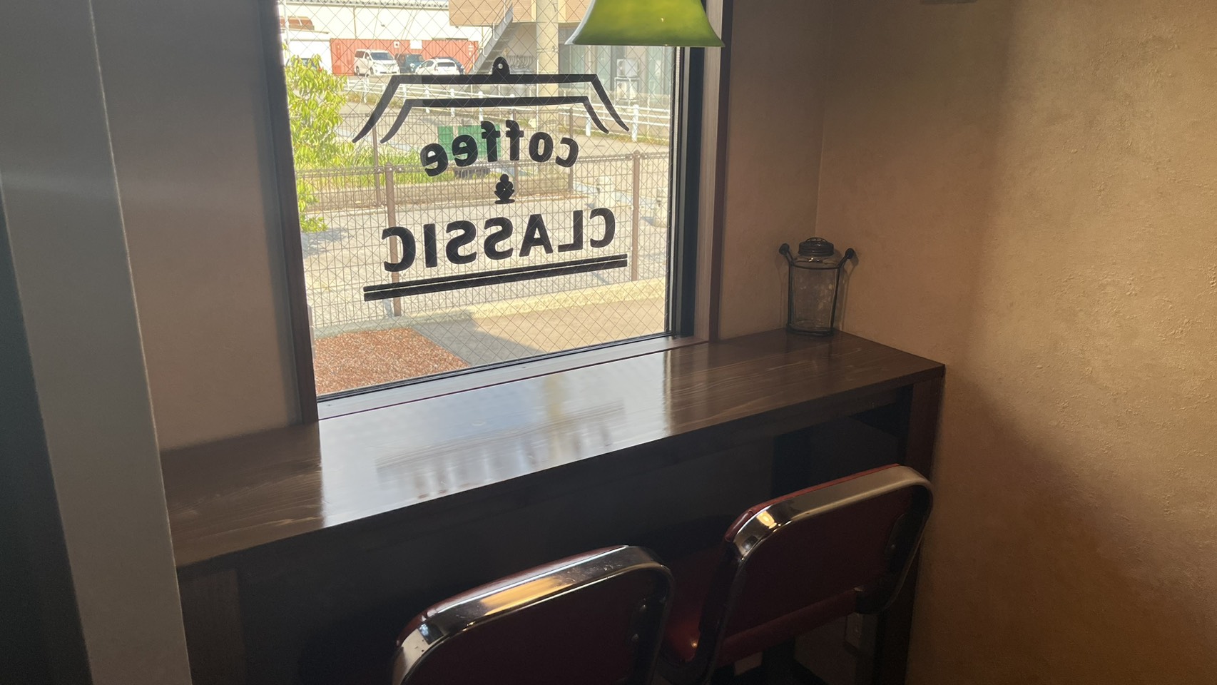 すてきなステンドグラスの窓が見える「喫茶クラシック」さんです。