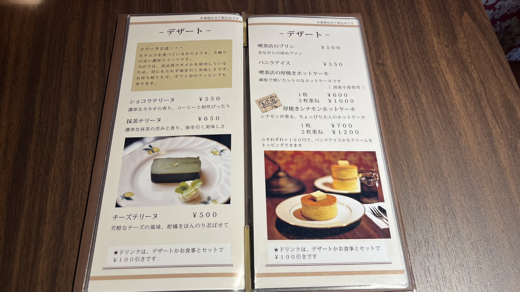 デザートは、プリンやホットケーキ、テリーヌなど。どれもおいしそうですね。