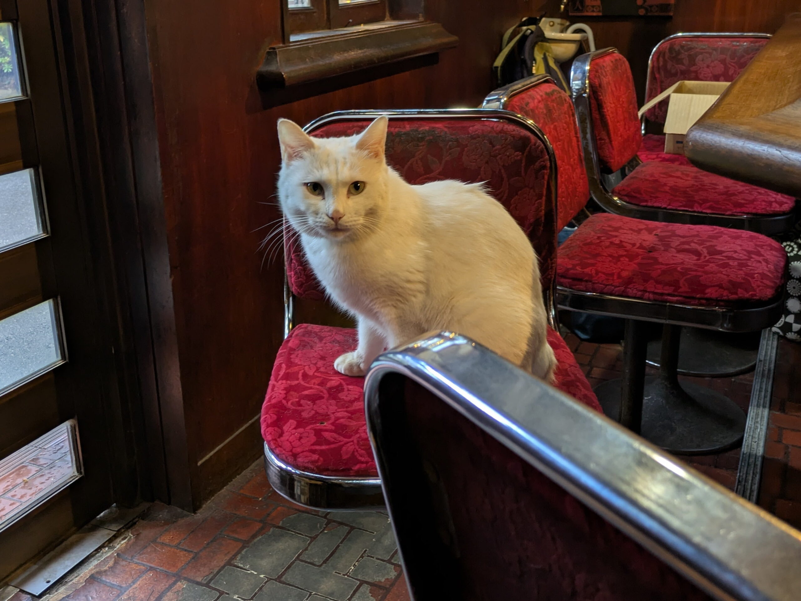 「喫茶 岸」さんに出向いて、2匹のネコたちに会えるかは運次第。