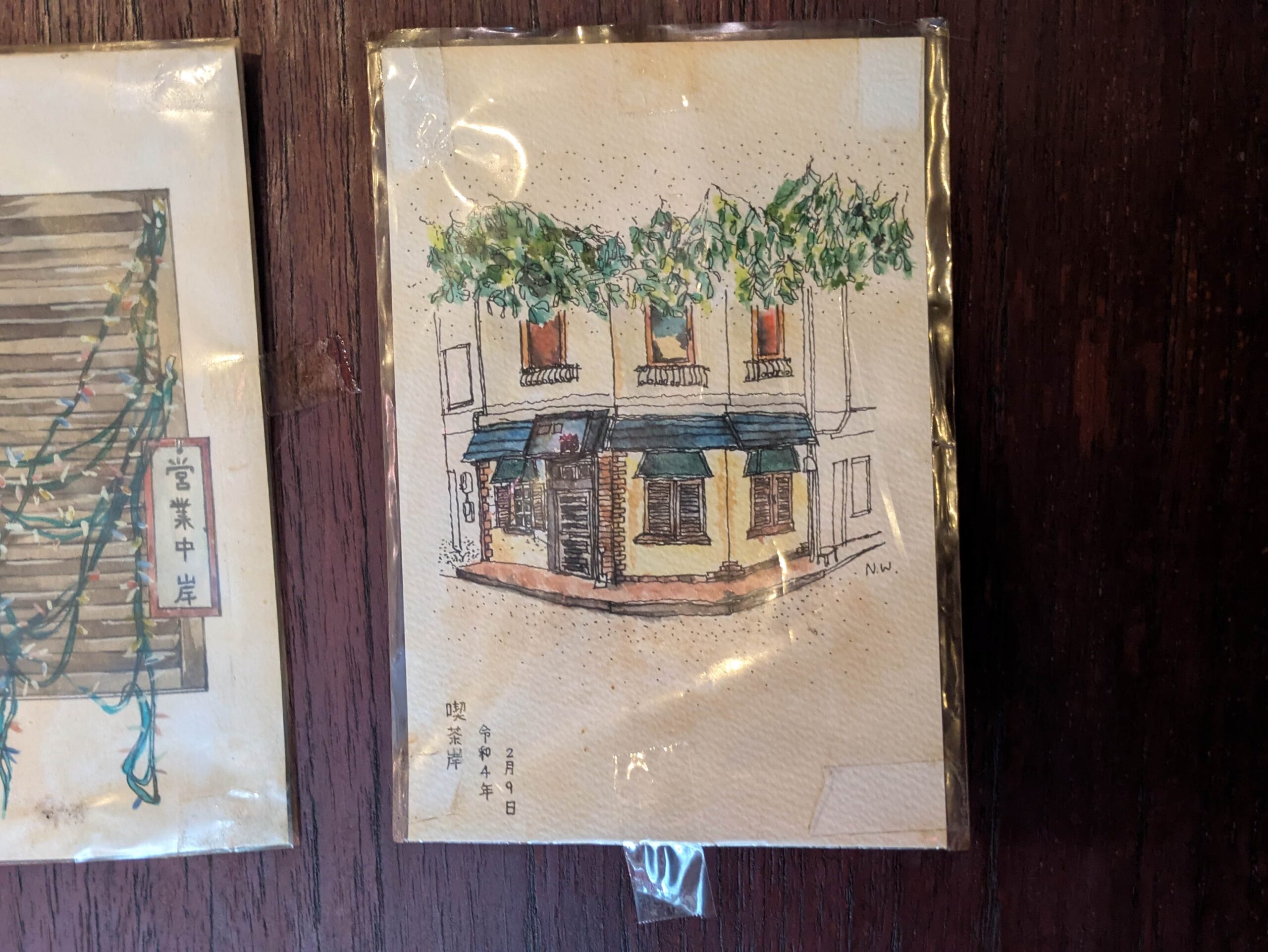 店内には、訪れたお客さんから贈られたイラストや写真がたくさん。