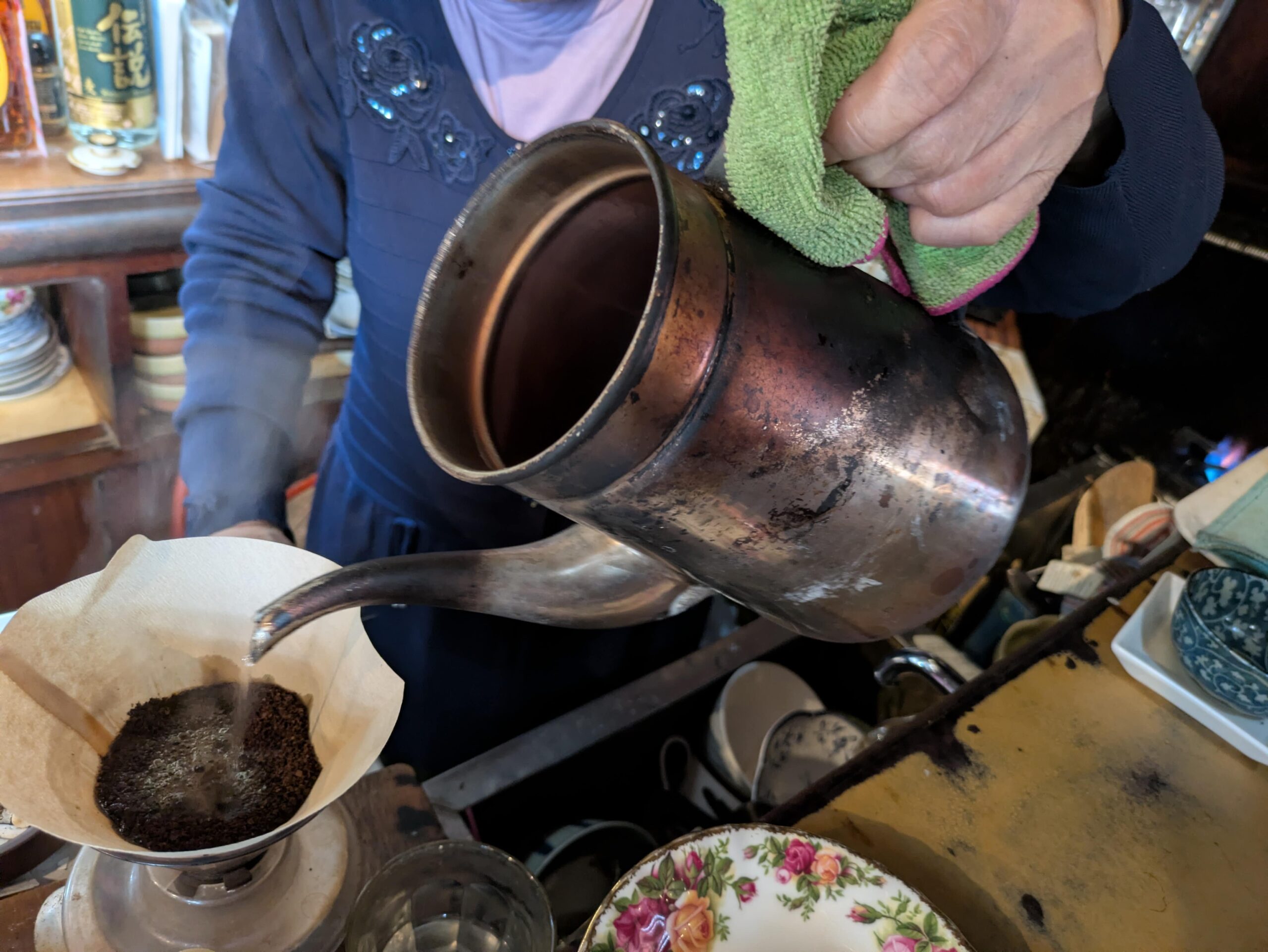 使いこまれた道具と、熟練の技で淹れられた1杯は、間違いのない美味しさです。