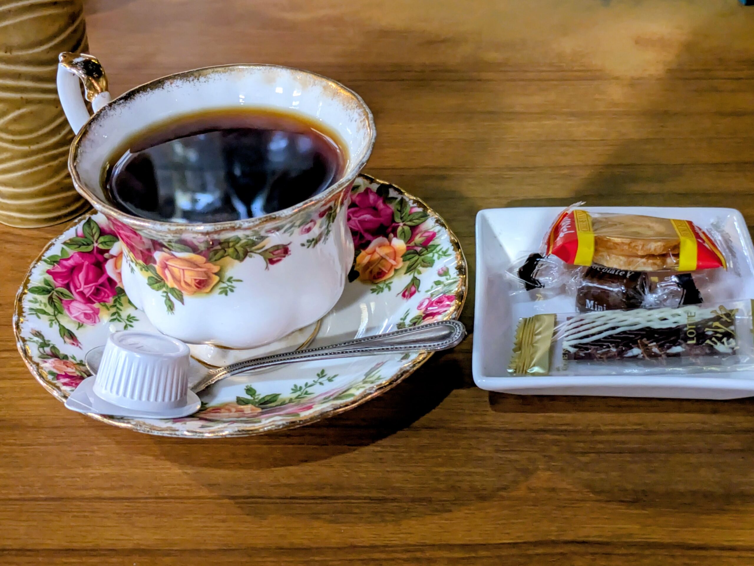 コーヒーには、お茶請けもついて、この価格。ありがたい!