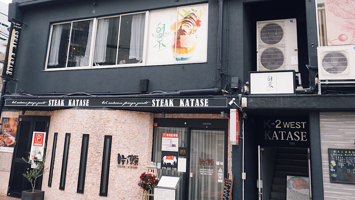 金沢駅西口から徒歩約5分。「K-2ウエスト片瀬ビル」の2階、建物中央の階段を上がった先にお店の入り口があります。