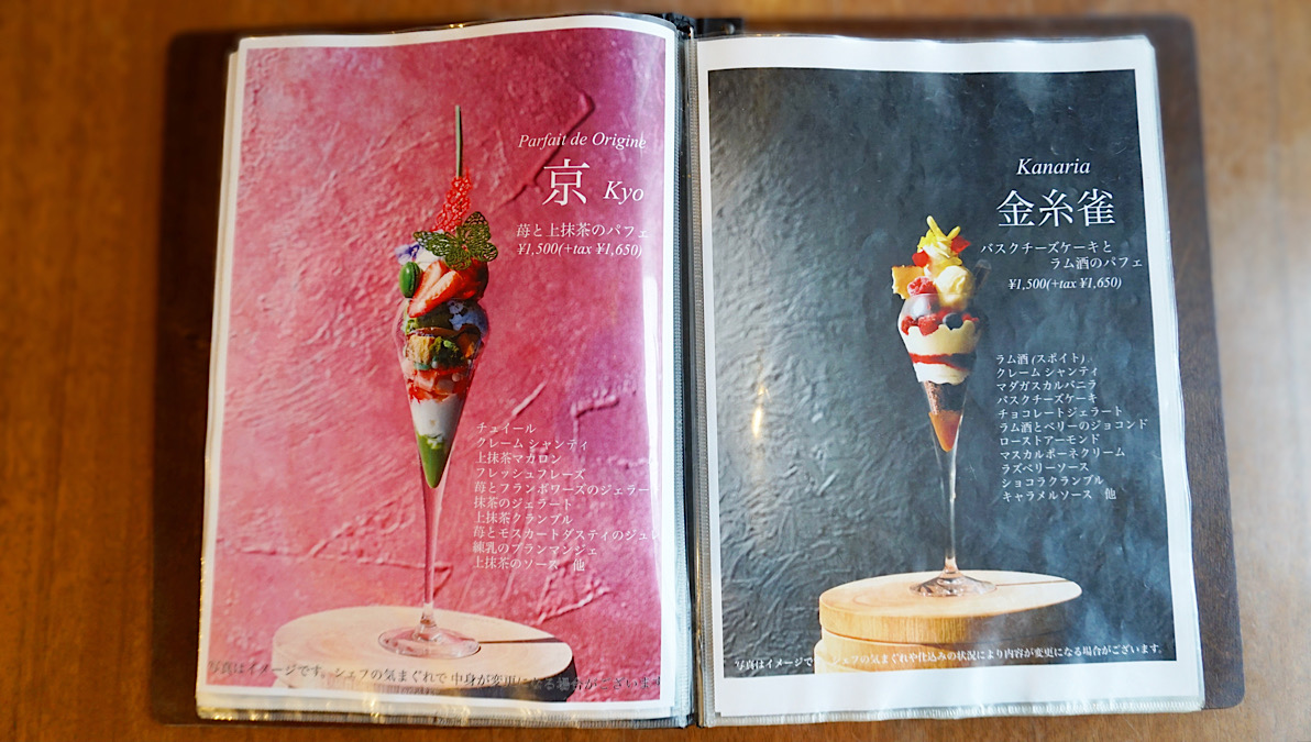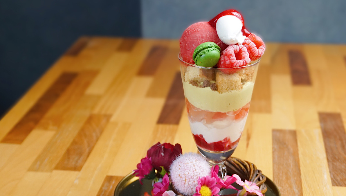 そのコンセプトは、代表作の和風パフェ「京」にも通じています。パフェという洋のスイーツに、抹茶など和の要素を掛け合わせることで生まれる、新しい味わいと表現。