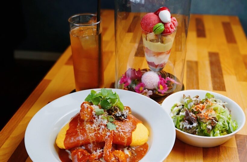 オムライススタジアム全国大会で準グランプリに輝いた実力派のオムライスと、まるで芸術品のように美しいパフェが食べられる人気店「胡京 komachi」さん。