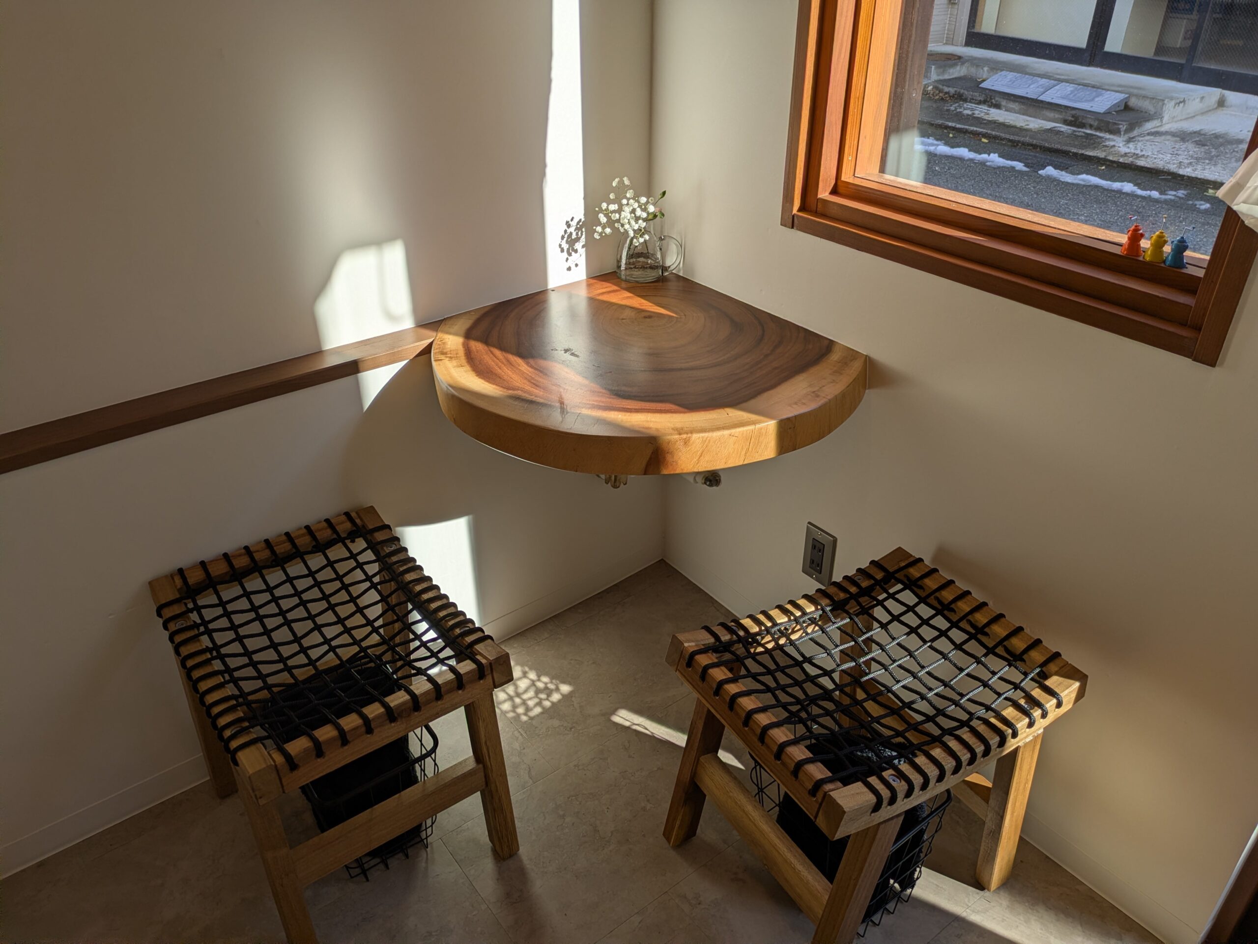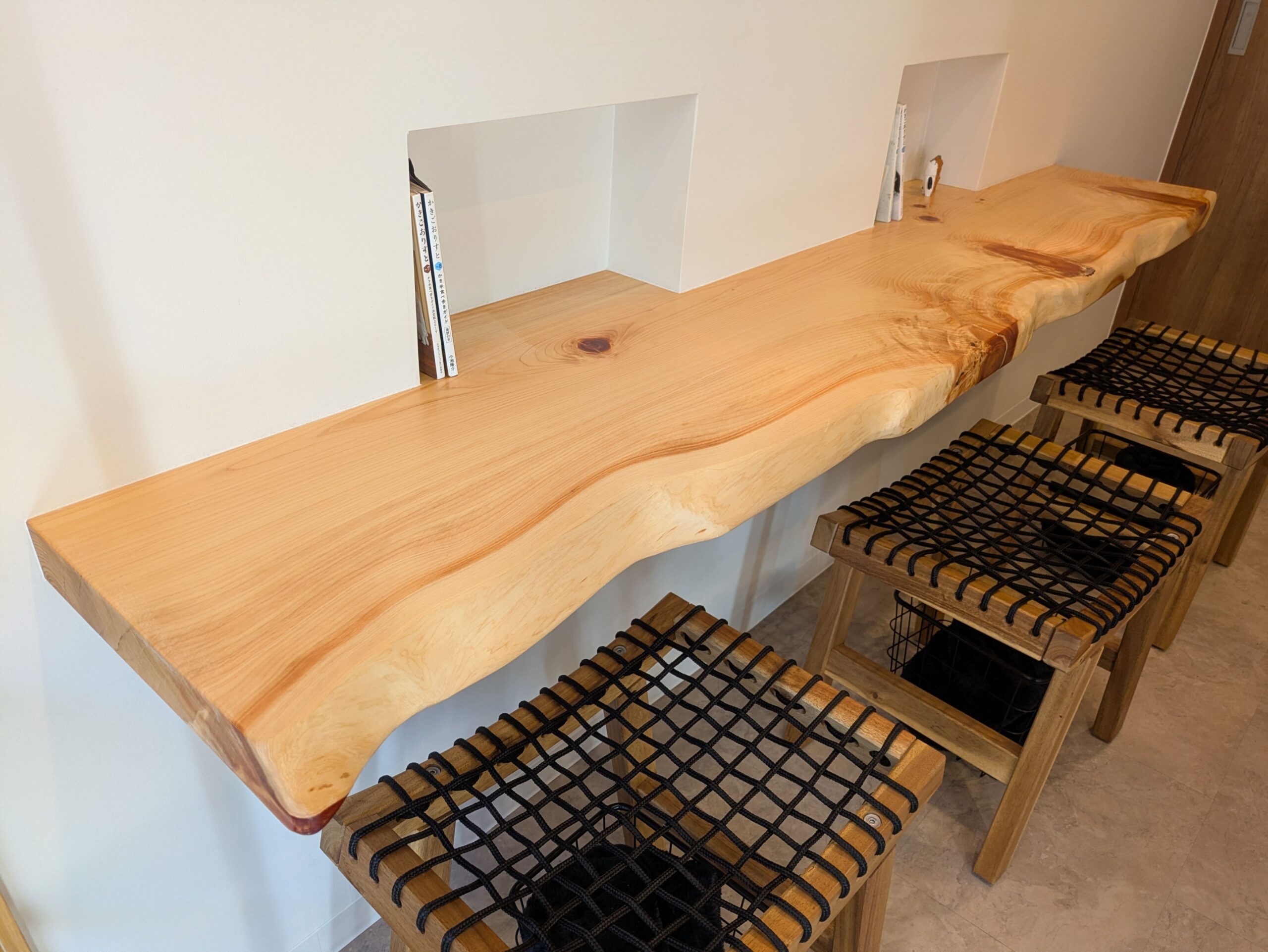 店舗の工事が始まると、毎日、開店まで現場に通いつめたのは理想の内装にこだわりたかったから。モンキーポッドという木材を使った丸テーブルや、一枚板のカウンターは自慢のつくり。寒い時期には、ヒーターやブランケットでかき氷を美味しく食べられる環境作りにも抜かりなしです。