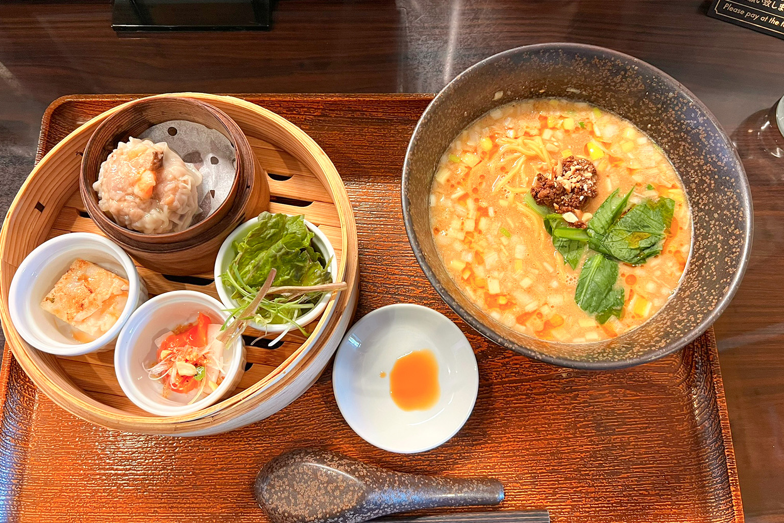 ●担々麺ランチセット(プリプリ海老焼売・前菜3種付き)1,600円(税込)