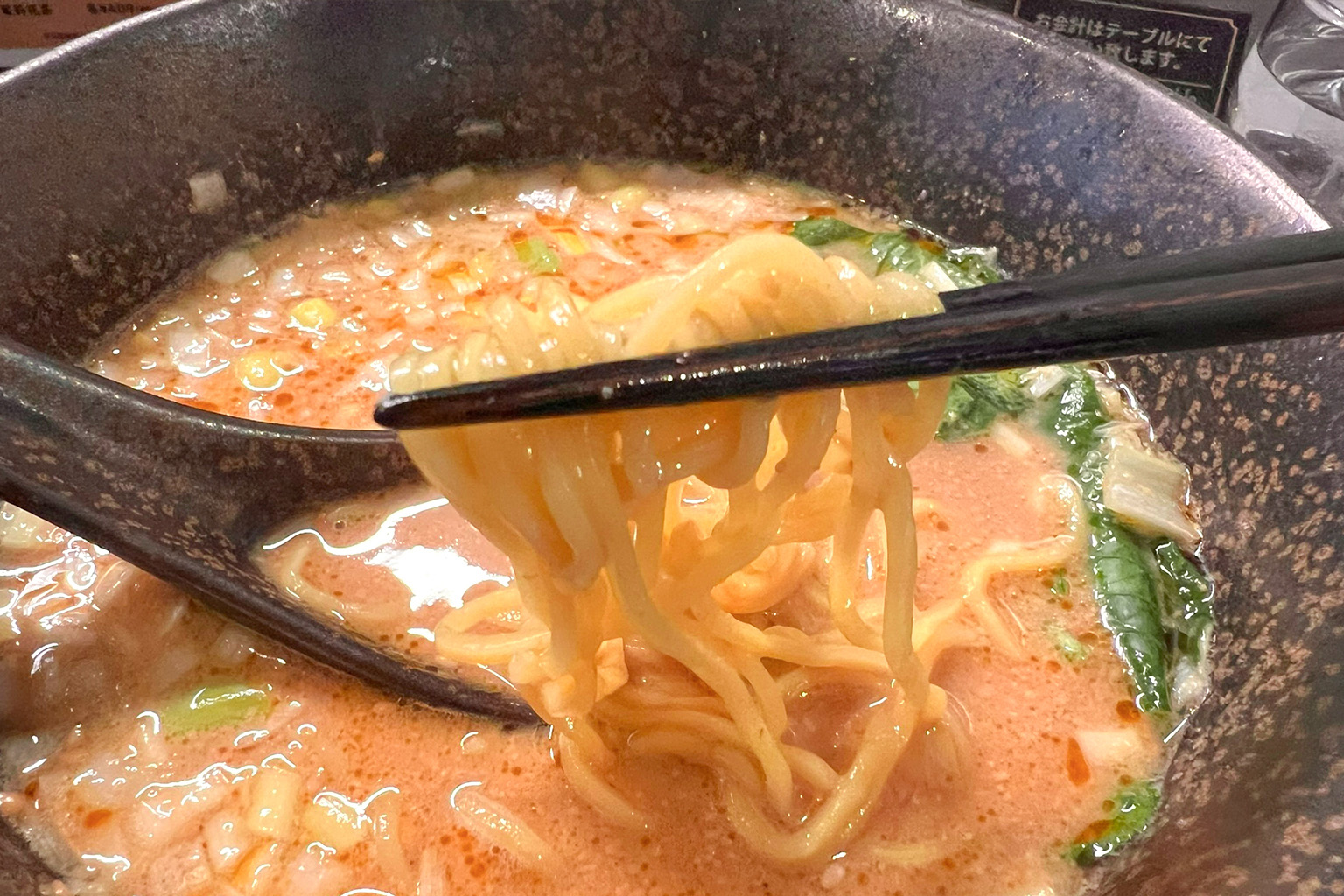 実際にいただいてみると、とても濃厚なのにしつこさがなく、ゴマの香りが口いっぱいに広がってとても美味しい! スープの奥深い味わいに、思わず「おいしい~」とつぶやいてしまいました。ちなみに、担々麺には+150円で追い飯もできるので、残ったスープにご飯を入れて2度楽しめますよ。