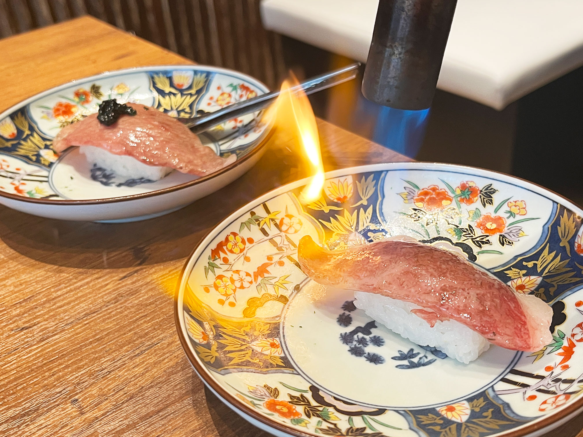 見た目が良すぎる炙り肉寿司は、食べる直前に店員さんが炙ってくれます。