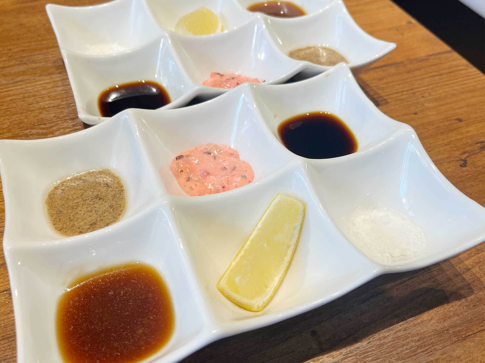 「LUCKY-ROO」さんの面白いところは、タレの種類の多さ。それぞれにおすすめのタレが用意されています。
