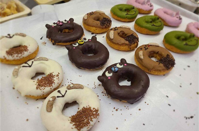 1歩中へ入れば、そこは甘く香ばしい香りが立ち込める「お菓子の工房」です。華やかなデコドーナツたちが1つひとつ丁寧に仕上げられていく様子は、まさに職人技。過度な装飾がないからこそ、手作りスイーツの確かな存在感と温もりが真っ直ぐに伝わってきます。