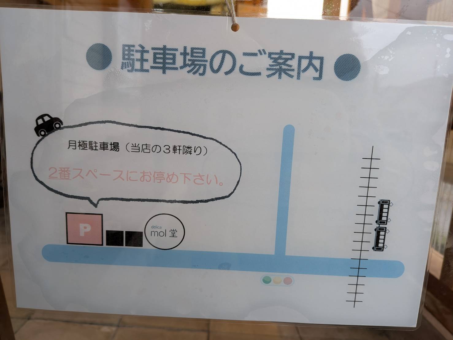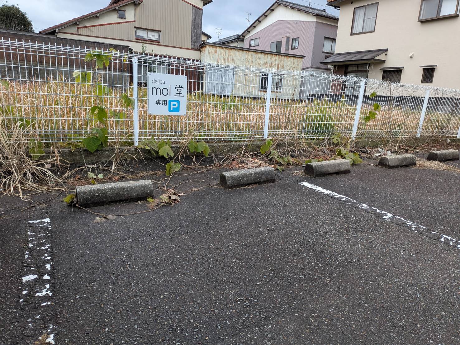 駐車場は店前に1台、店舗から3軒先の駐車場に1台の計2台あり、車での来店も可能です。