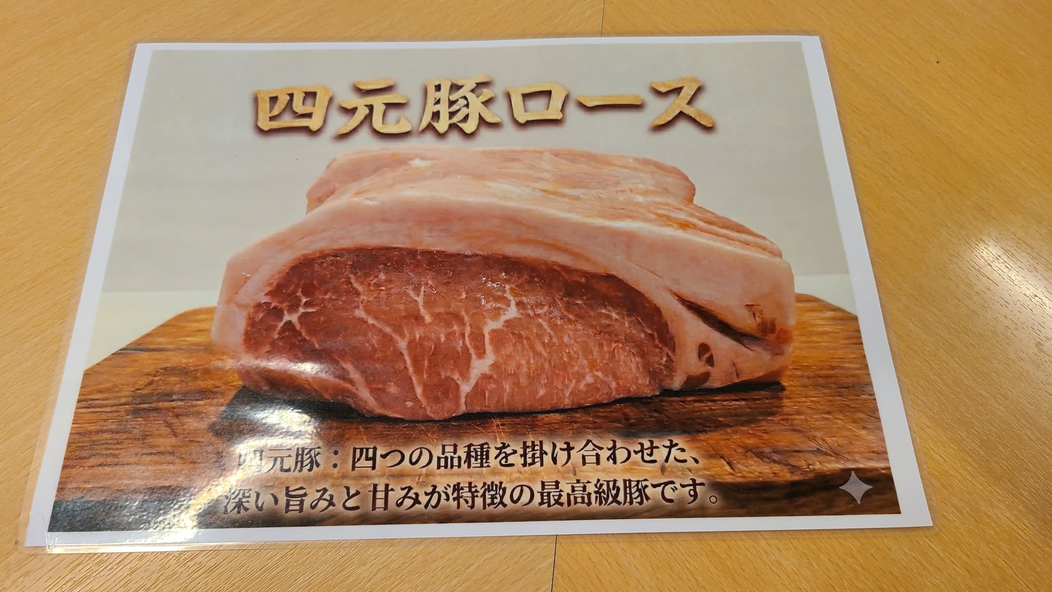 「三元豚よりもさらに1種類多い品種を掛け合わせることで、それぞれの豚の良いとこ取りをした、より肉質のキメが細かく、脂に甘みがあるのが特徴です」