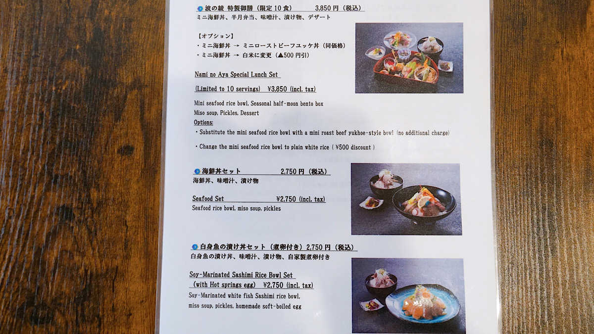 1日10食限定の豪華な「波の綾 特製御膳」3,850円(税込)も気になりますが…今回は出店しているショッピングモールサイトでも圧倒的な人気を誇るという「白身魚の漬け丼」をいただくことにしました。