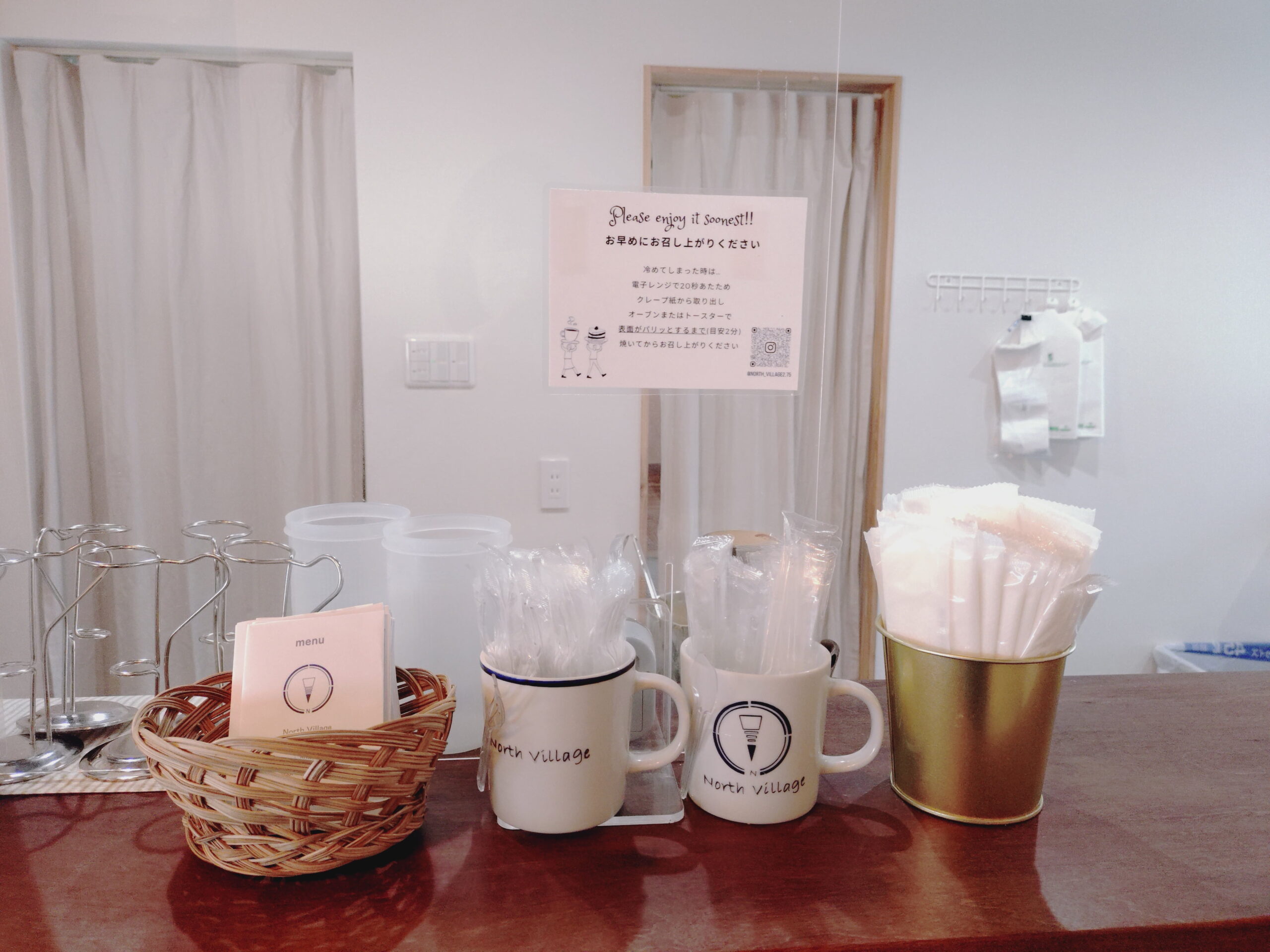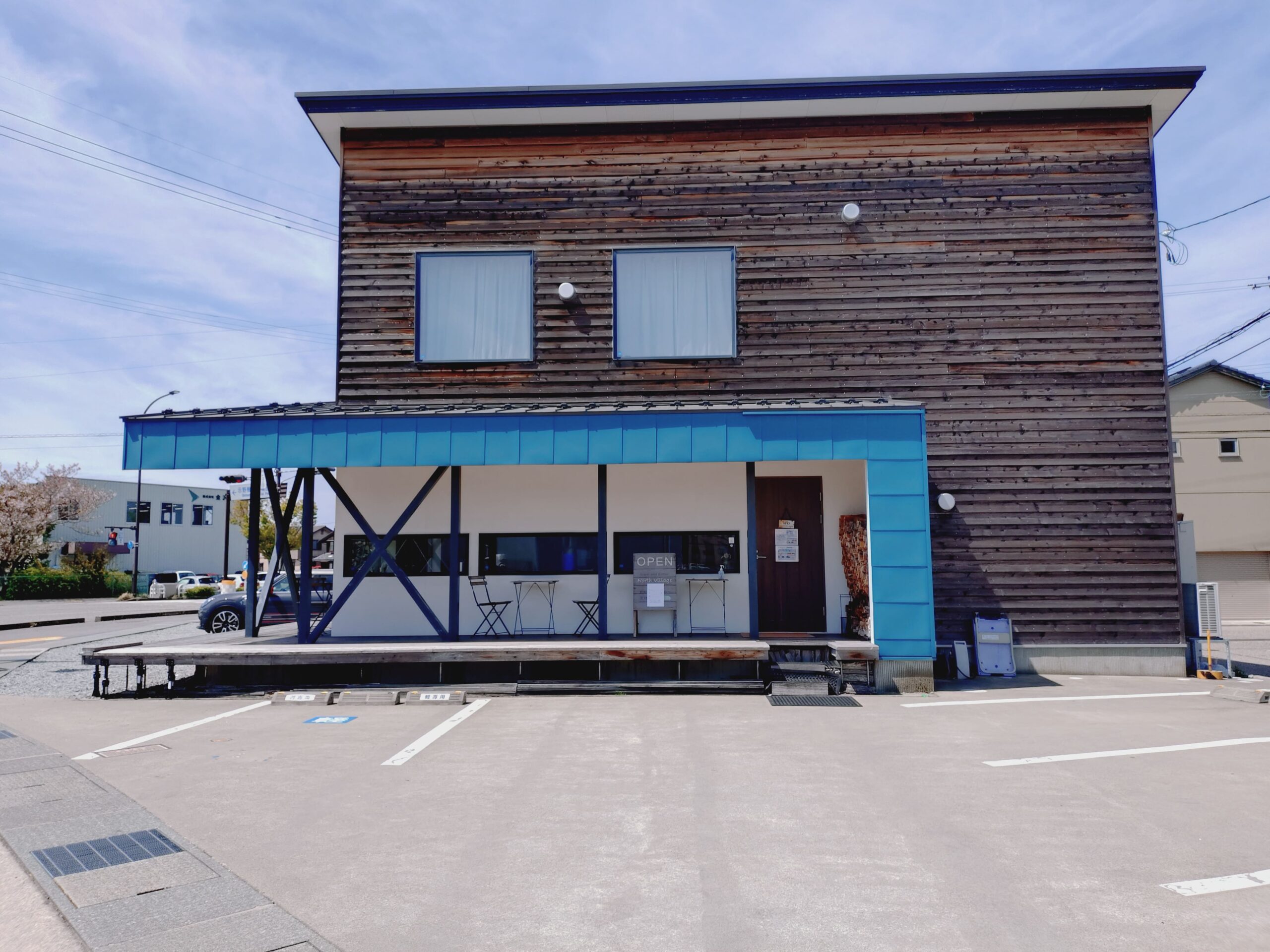 金沢市松村。イオンから海側環状道路沿い、ウッド調のおしゃれな建物が目を引くクレープ専門店「North Village(ノースヴィレッジ)」さん。外観や内装のデザインが印象的な、特別感のあるスイーツ空間です。