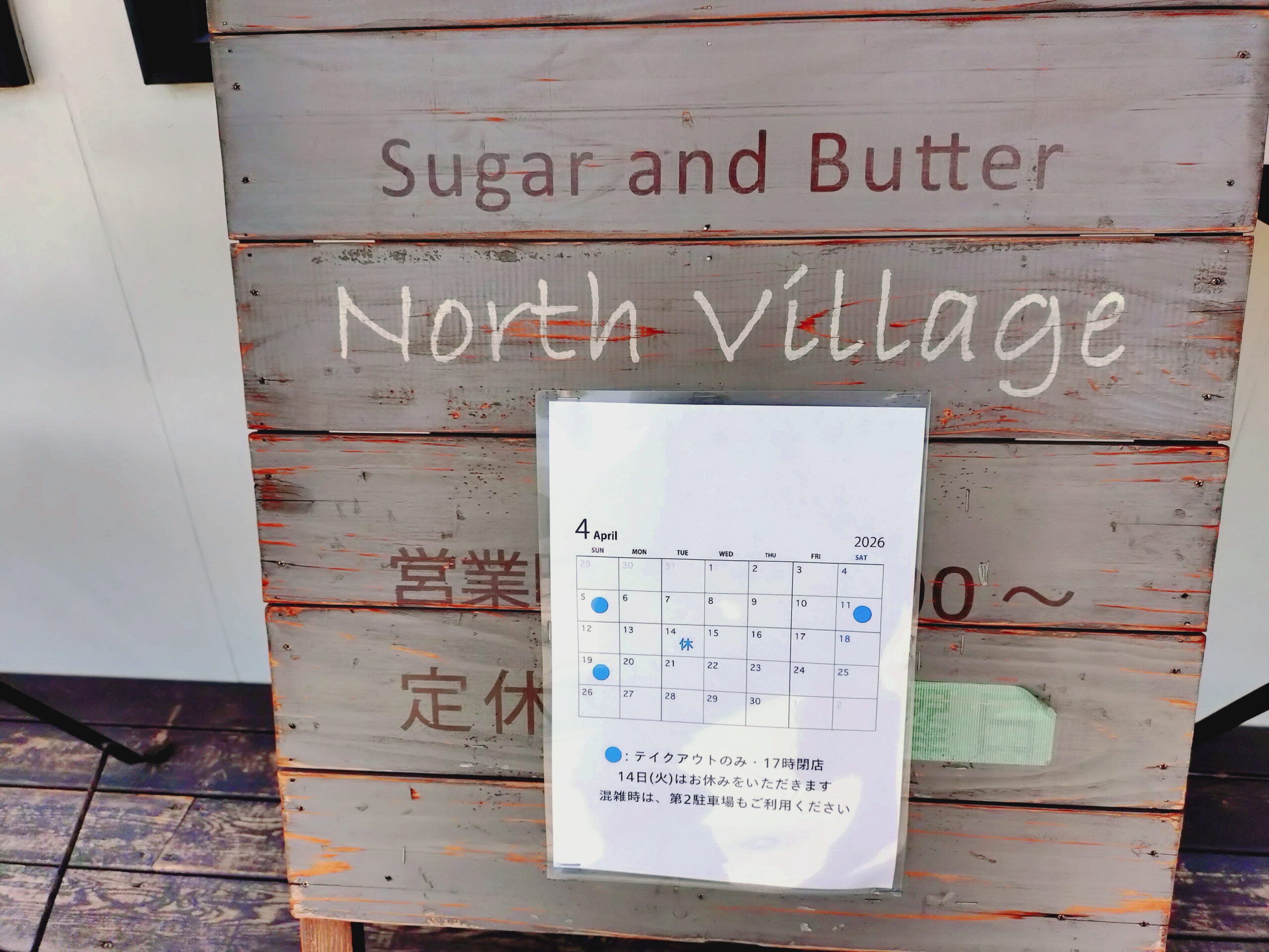 入口には営業日の日程が掲示されています。