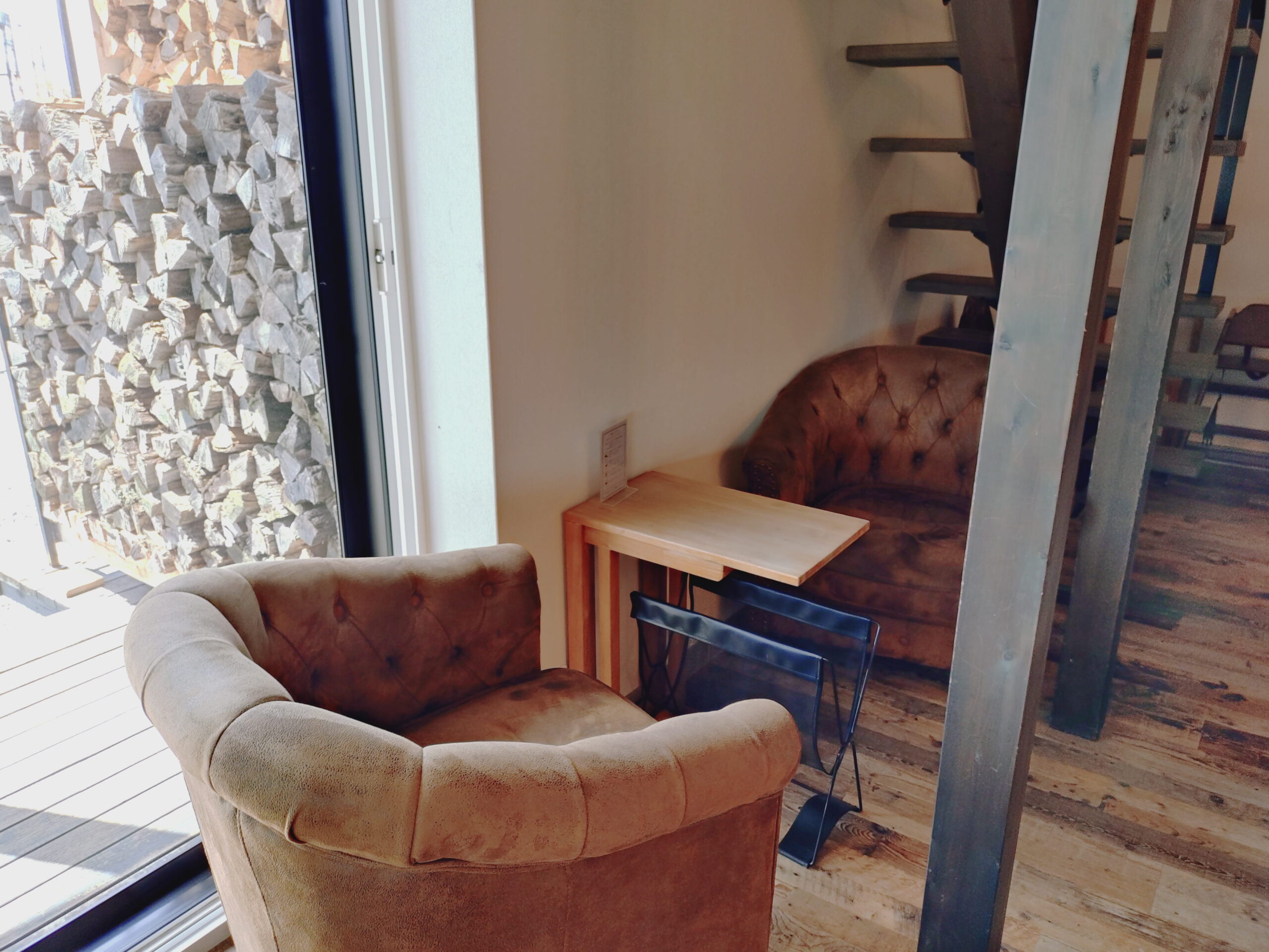 木の温もりを感じる空間には薪ストーブも設置されており、寒い時期は特に心地よい雰囲気に。
